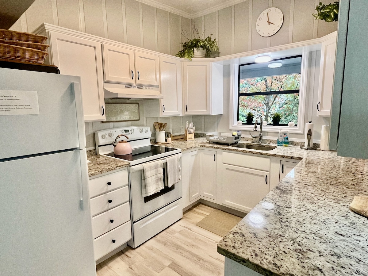 Warm Springs, GA'da F. D. Roosevelt Eyalet Parkı ve Callaway Bahçeleri yakınında evcil hayvan dostu, konforlu bir kulübe olan Southern Serenity'ye kaçın. Büyük boy yatak, çift kişilik yatak, ranzalar (tam ve ikiz) ve 2 tam banyo ile 7 kişilik. Veranda salıncaklarının, geniş bir arka terasın, çitle çevrili bahçenin, ateş çukurunun, şöminenin, ızgaranın ve tam donanımlı mutfağın keyfini KEURIG ile çıkarın. Fiber internet, kablosuz internet bağlantısı ve yayın TV'leri sizi bağlı tutar. Aile kaçamakları, sonbahar festivalleri veya rahatlamak, enerji toplamak ve yeniden bağ kurmak için huzurlu bir dağ kaçamağı için mükemmeldir.