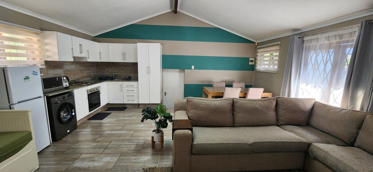 Klimalı, modern, kendi kendine yemek yiyebileceğiniz bir daire. King Shaka havaalanına ve alışveriş merkezlerine 15 dakika. Kraliçe yataklı 1 yatak odası. Açık planlı salon, yemek odası ve mutfak. Bulaşık makinesi, tam buzdolabı/dondurucu, çamaşır makinesi, mikrodalga fırın ve ocak. Salonun, gömme barbekü ile güverteye ve bahçeye açılan katlanır cam kapıları vardır. Banyo ve duş imkanlı banyo. Tam DSTV'li düz ekran TV. Ana evden ayrı, kendi girişi ve tamamen kapalı bahçesi ve garajı vardır. Salt Rock ana plajına 900 m.