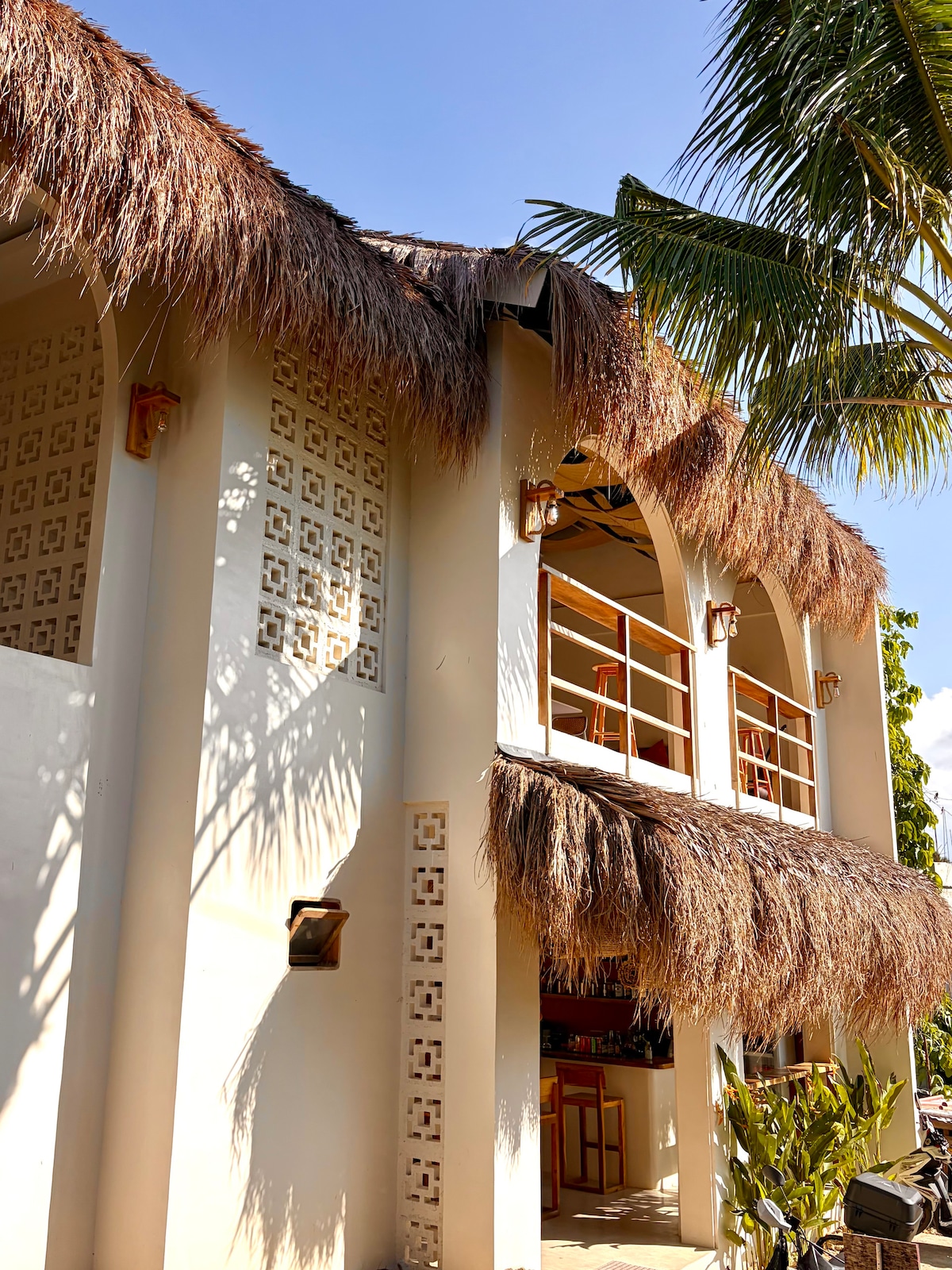 Experience a unique tropical stay at Confluence! Located in the heart of Santa Fe, just 3 minutes’ walk from Ocean9 surf spot and its stunning beach, our new space has been designed as a comfortable and elegant retreat, perfect for travelers seeking peace and relaxation. On this 2nd floor bedroom, enjoy total comfort with air‑conditioned rooms, a spacious private terrace, and ultra‑fast internet backed by solar battery, ensuring a restful and connected stay.