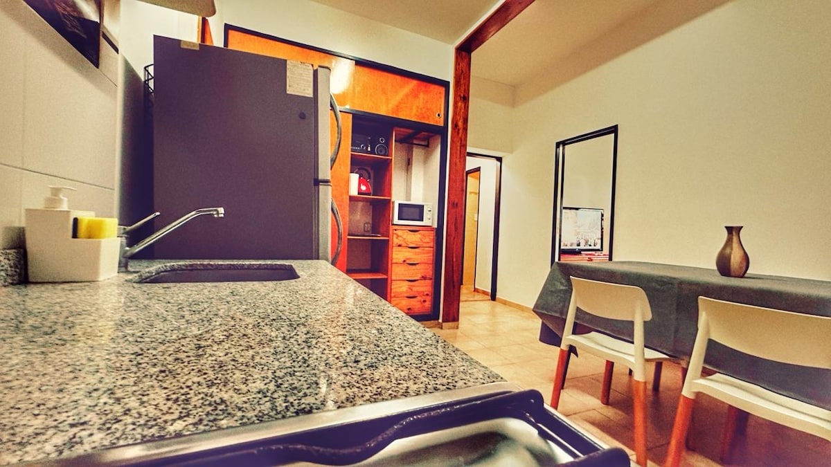 Quedate en este espacio único y disfrutá de una visita inolvidable a la ciudad de Buenos Aires. Departamento ideal para 1 o 2 personas, próximo a estacion de tren Villa Ballester con destino a Retiro y con conexiones con varias lineas de subte( lineas B, C, D ). Con balcón y tejido de protección para niños. Horno a gas, microondas electrico, cafetera, pava, heladera con freezer no frost y vajilla. Durante tu estadia contaras con juego de sabanas, toallas, shampoo, acondicionador y jabón.