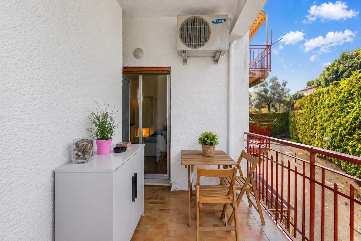Denizden 30 metre uzaklıkta, 2020 yılında tamamen yenilenmiş, Giardini-Naxos ve Taormina sahiline bakan büyük bir terasa sahip küçük, konforlu mini daire; bir yatak odası, oda içinde banyo, terasta işlevsel dış mekan mutfağı, asansörsüz dördüncü kattan oluşmaktadır. Oda şu donanımlara sahiptir: klima, sound bar'lı akıllı TV, ütü, saç kurutma makinesi, kahve makinesi, su ısıtıcısı, Wi-Fi, nevresim takımı (plaj havluları hariç). Mutfak: çamaşır makinesi, lavabo, gazlı /indüksiyonlu ocak