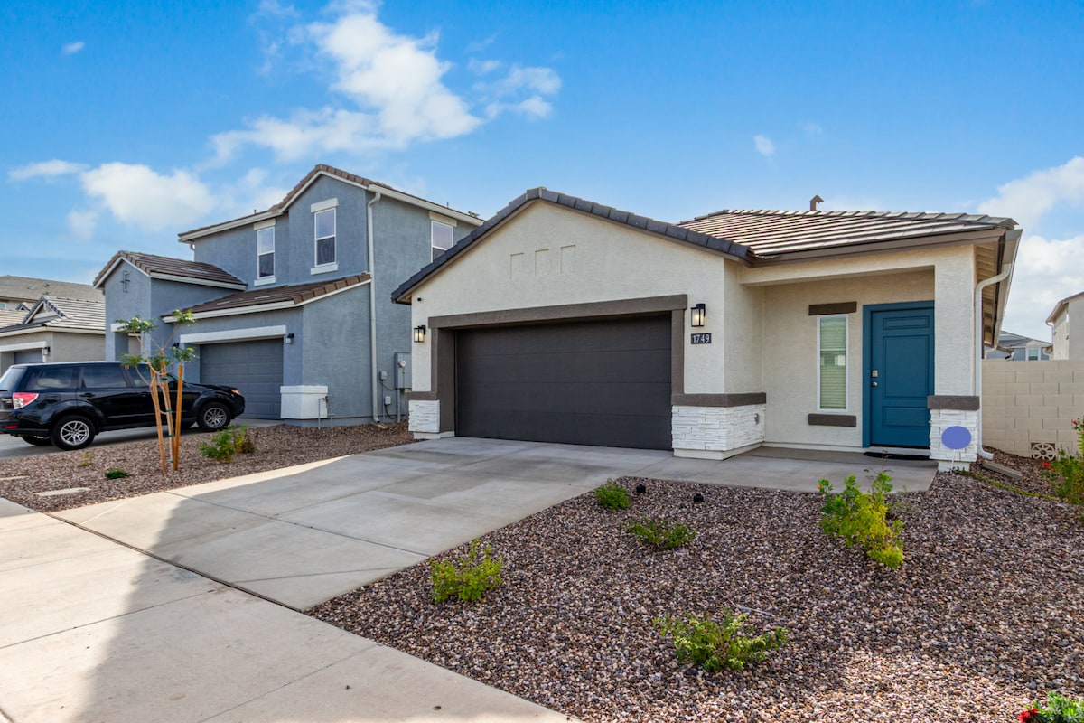 Superstition Dağları yakınındaki güvenlikli sitede yepyeni 3 yatak odalı ev. Açık bir yerleşim planı, tam donanımlı mutfak, yüksek hızlı kablosuz internet bağlantısı, akıllı TV, çamaşır makinesi ve özel iki araçlık garajın keyfini çıkarın. Havuz, su oyunları alanı, fitness salonu, kulüp binası, parklar ve yürüyüş parkurları gibi tatil köyü tarzı olanaklara erişim. Mesa, yemek, yürüyüş ve Gateway Havalimanı'na birkaç dakika. Kısa veya orta süreli konaklamalar için mükemmeldir.