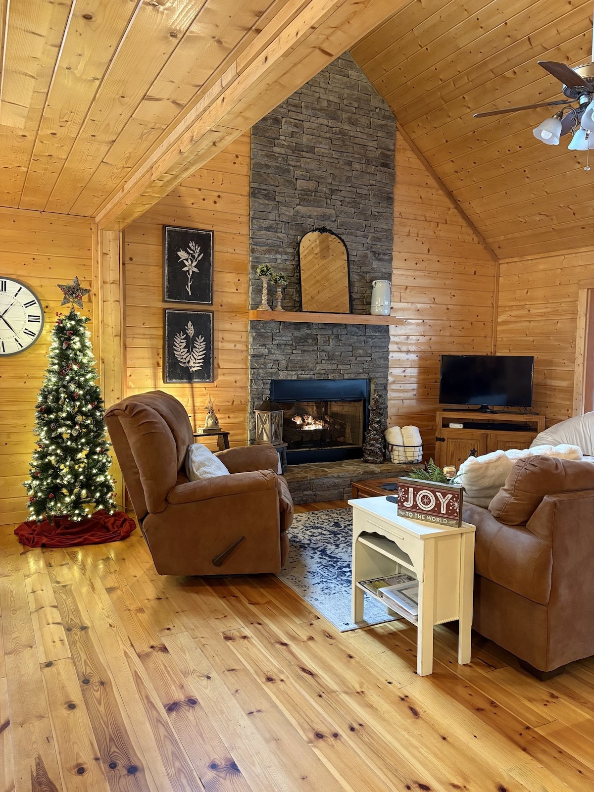 The Bear & Goose Cabin'e hoş geldiniz. ★ Nefes kesen katmanlı dağ manzaraları, geniş açık hava terasından sizi karşılar ve pitoresk bir fon oluşturur! Atari oyunları ve masa oyunları ile çatı katı oyun odamızda ekibinize dostça bir rekabette meydan★ okuyun. Aile film gecesi için mükemmel olan geniş aile odasındaki iki katlı taş gazlı şöminenin etrafında★ toplanın. ★ Mutfağımızda modern cihazlar ve sabah kahvenizi demlemek için mükemmel bir kahve köşesi bulunmaktadır.
