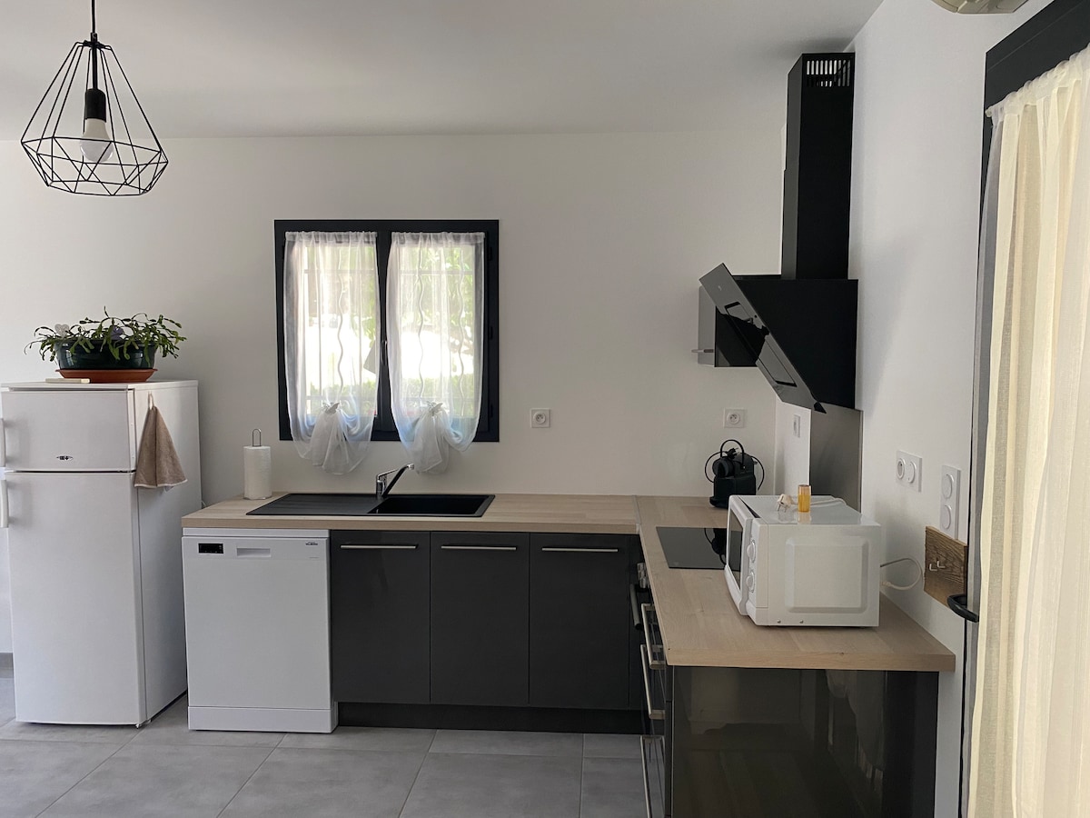 Tatilde veya iş seyahatinde, 2 kişi için ideal olan 48 m2'lik dairemizin keyfini çıkarın. Küçük bir Provençal köyünün göbeğinde, mağazalara 500 metre mesafede. Konaklama, tam donanımlı mutfak, TV salonu alanı, banyo, ayrı tuvalet ve 160 x 200 boyutlarında 1 yataklı bir yatak odası bulunan 2 dairelik sessiz bir konutta birinci katta bulunmaktadır. Güzel ve temiz dekorasyon. Ev sahibinin bahçesine bakan bir teras, park yeri mevcuttur.