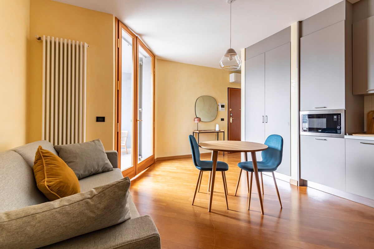 Dairemiz geniş (80 metrekare) ve aydınlıktır, iç bahçe ve Molino Stucky manzarasına sahiptir. Vardığınızda harika bir ortak bahçe sizi karşılayacaktır. Daire birinci kattadır ve asansörlidir. İki aydınlık ve geniş yatak odası (biri çift kişilik yataklı ve biri tek kişilik yataklı), banyo / duş ve çamaşır makineli büyük bir banyo, modern ve işlevsel mutfak, çekyatlı yemek / yaşam alanı, TV, KABLOSUZ İNTERNET BAĞLANTISI içerir.