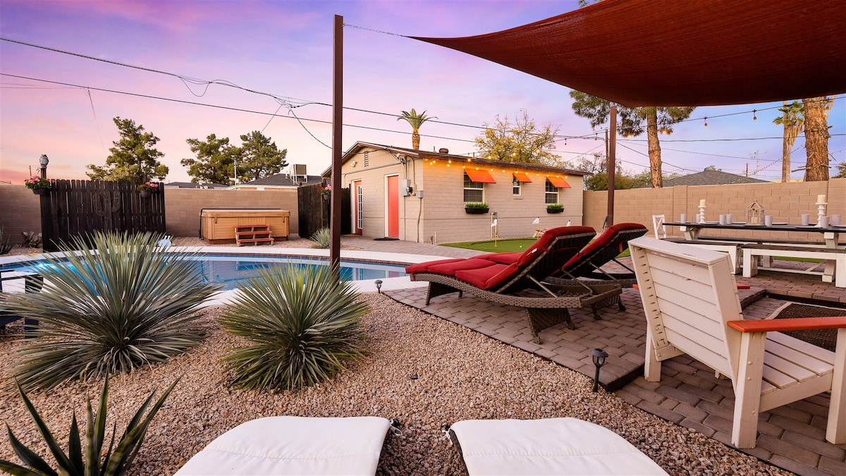 Bu şık oda kahvaltıda bahçe verandasının yemyeşil ortamında yüzün. Açık tuğla, büyük resim pencereleri ve canlı sanat eserleri ve dekorasyonun ortasında lüks bir parke masada servis edilecek ortak, gurme mutfakta bulunan kontinental kahvaltının tadını çıkarın. * Özel banyolu yeni özel ve modern yatak odası. * Özel yüzme havuzu ve yemyeşil peyzajı olan, yeni yenilenmiş 3 yatak odalı yüzyıl ortası ev. * Bu oda ve kahvaltı kaydı, ortak gurme mutfağında her gün hazırladığımız kontinental kahvaltıyı içerir. Evimiz, 1970 yılında Phoenix Wrightsian mimarı tarafından tasarlanan ve inşa edilen ve 2015 yılında tamamen yenilenen yüzyıl ortası modern bir mülktür. Merkezi konumu, Phoenix'i zevk için keşfediyorsanız, bir etkinlik için ziyaret ediyorsanız veya iş için şehirde vakit geçiriyorsanız mükemmel bir ortamdır. Bu "Tüm Ev" kaydı için resimli tüm alanlara tam, ortak erişim. Evin bir ucunda kalıyoruz ve evin karşı ucunda misafirler için iki aktif kaydımız var. Bizi internette arayın: #VillaParadisoPhoenix Mutfak alanının tadını çıkarın ve kahvaltı yapın. En sevdiğiniz buharlı kahve içeceği, sıcak çay ve kontinental kahvaltı (yoğurt, meyve suyu, kruvasan, meyve vb.) kaydınıza dahildir. İçeride ve dışarıda resimli tüm alanların keyfini çıkarın. Odanız ve banyonuz özel olup queen yatak, birinci sınıf nevresim takımı, dolap, kablosuz internet bağlantısı, Netflix, masa ve daha fazlasına sahiptir. Banyo odadan sadece üç adım uzaklıktadır ve size kolaylık sağlamak için bornoz sunuyoruz. Mutfak ve buzdolabı, özel yüzme havuzu, ön ve arka verandalar ve diğer tüm yaşam alanlarını kullanabilirsiniz. Ön kapı, akıllı telefonunuzla açabileceğiniz akıllı kilitle donatılmıştır. Evde yaşıyoruz ve misafirlerimizin seçtiği etkileşim düzeyinin tadını çıkarıyoruz. Ev, Phoenix ve Scottsdale sınırında sessiz ve köklü bir yerleşim bölgesindedir ve gece hayatı noktalarına, restoranlara, yürüyüşe ve spor etkinliği yerlerine arabayla gidebilirsiniz. Konaklamanızın süresine ve ziyaret etmek istediğiniz yerlere bağlı olarak kiralık araç veya Uber hizmeti en iyi seçenekler olabilir. Bize sormaktan çekinmeyin. Akıllı telefon navigasyonu sizi adresimize kolayca ve doğru bir şekilde yönlendirecektir. Havaalanına 10 dakikadan az mesafedeyiz. Evimizde evcil hayvan yoktur ve sigara içmeyiz.