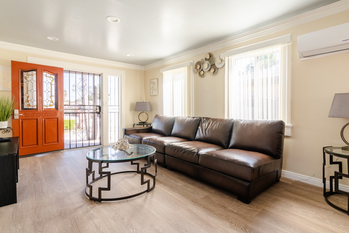 Canlı Venice Bulvarı'ndaki yeni yenilenmiş 3 yatak odalı 2 banyolu vahamızda lüks ve konfora adım atın! Şık dekoru ve aile dostu atmosferiyle evimiz sizi şık bir şekilde dinlenmeye davet ediyor. King yatakta biraz dinlenin, şık mutfakta yemek hazırlayın, özel verandada Kaliforniya güneşinin tadını çıkarın veya güneşin altında biraz eğlenmek için Venice Beach'e yürüyün. Los Angeles maceranız burada başlıyor!