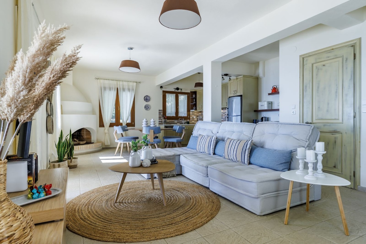 Güzel Glossa Köyü'nde bulunan, Ege Denizi'nin ve muhteşem gün batımının muhteşem manzarasına sahip tam donanımlı bir kır evi! Kolay yaşam tatili için uygundur! Mobilya ve dekorasyon, kaygısız bir atmosfer yaratan doğal malzemelerden yapılmıştır. Evin köyün sonunda, sessiz bir bölgede olması konaklamanızı rahatlatır. Aynı zamanda pazara, küçük dükkanlara, fırına, restoranlara, kahve dükkanlarına ve otobüs durağına 10 dakika (yürüme mesafesinde) uzaklıktasınız.