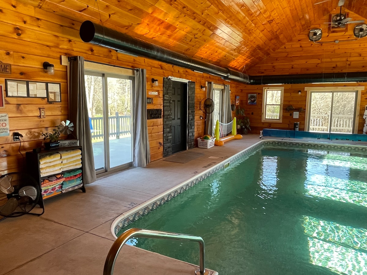 Alt Adirondacks'ta bulunan 2000 fit karelik yıl boyunca kapalı havuz evi. Bölgede yapılacak birçok açık hava etkinliği vardır... balıkçılık, teknecilik, yürüyüş, kano, kar motosikleti, kros kayağı ve restoranlar. Göllerin yakınında ve göllerdeki restoranlar da dahil olmak üzere bölgede ve çevresinde yapılacak şeyleri içeren rehberime göz atın. Günü keşif yaparak geçirin ve daha sonra kendi özel havuzunuzun sıcaklığında dinlenmek için geri dönün, verandada ateşin yanında oturun veya ızgarayı çalıştırın.