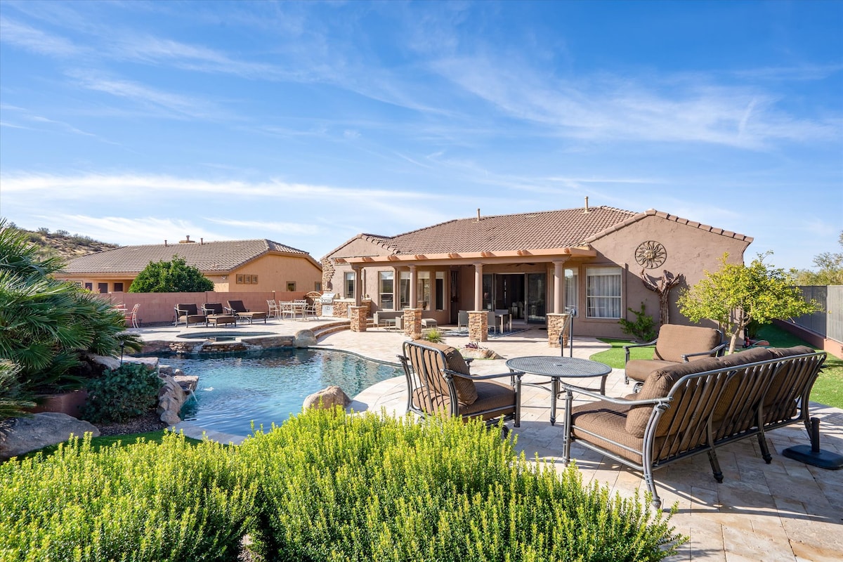 Bu yeni yenilenmiş, tamamen mobilyalı 4 yatak odalı, 4,5 banyolu tatil köyü tarzı mülkte gerçek bir dinlenme konforu lüksü. Arka bahçede 2 şelale, jakuzi ve negatif kenarlı havuz bulunmaktadır. Ankastre gazlı ızgara. Şef mutfağı; çift konveksiyonlu/air-fryer fırınlar ve ticari sınıf buzdolabı. Ankastre soğutucu çekmeceleri, buz makinesi, mikrodalga fırın ile muhteşem ada. Büyük odada, gazlı şömineli ve Superstition Dağları ve Dinozor Dağı'nın panoramik manzarasına sahip 16 fitlik kasalı tavanlar bulunmaktadır.