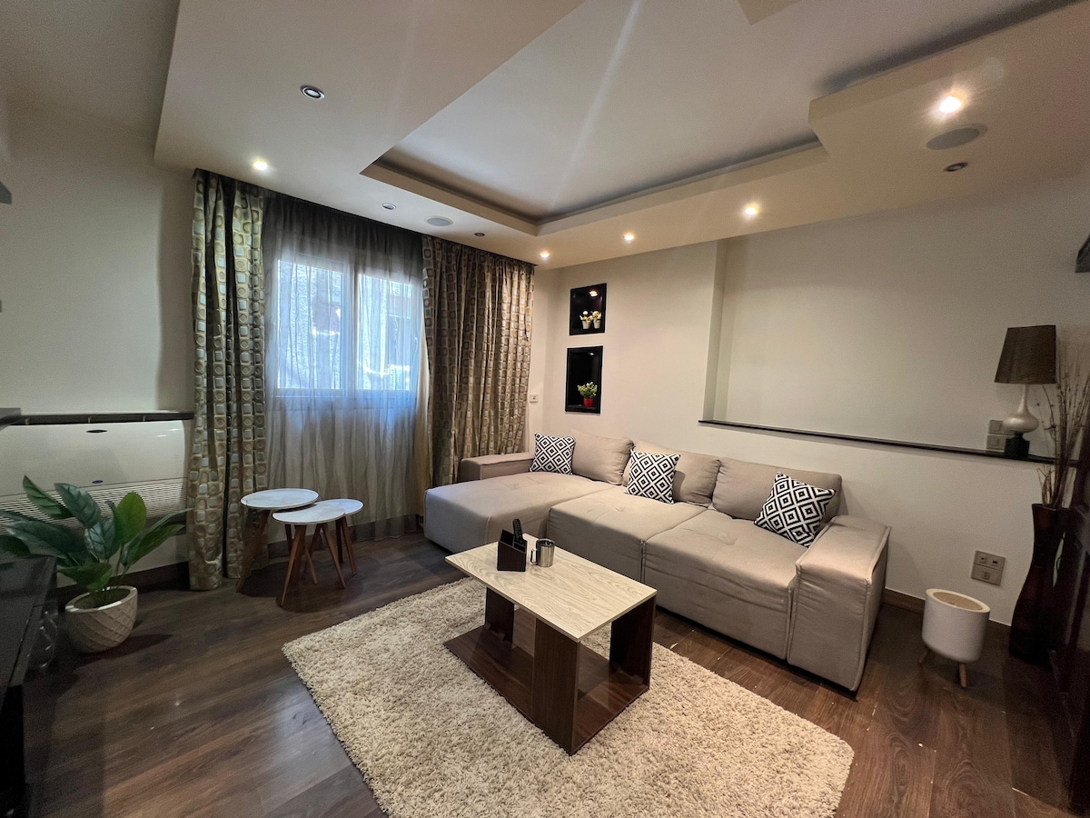 🏡 Şık Şehir Merkezi Dairesi – En yeni Kahire Metrosu'na birkaç adım! Seveceğiniz şeyler: ✔ Birinci Sınıf Konum: Havaalanına, kafelere ve alışveriş merkezlerine sadece bir dakika uzaklıktadır. ✔ Rahat ve İyi Tasarlanmış: Akıllı TV ve hızlı kablosuz internet bağlantısı olan yatak odası. ✔ Rahat Yatak – Huzurlu bir uyku için yüksek kaliteli şilte ve lüks nevresimler. ✔ Düşünceli Ekstralar: Temiz havlular, tuvalet malzemeleri ve hoş geldiniz atıştırmalık sepeti! Not: Dairede karma gruba veya çiftlere izin verilmediğini lütfen unutmayın.