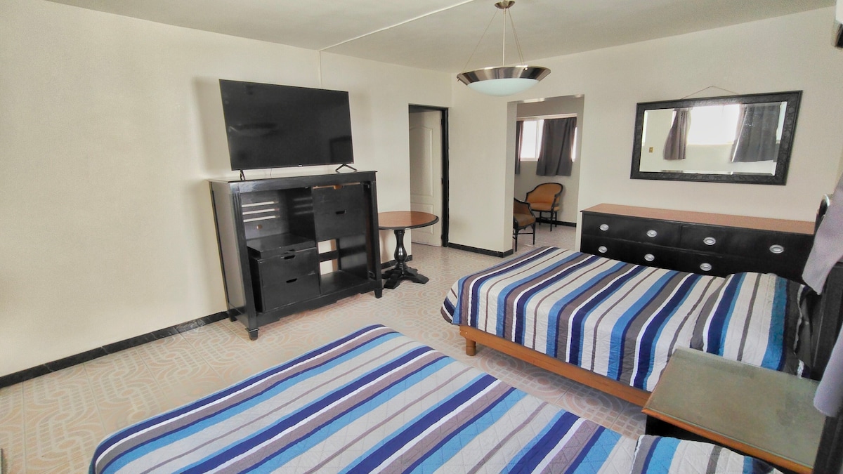 Habitación amplia con 3 camas, ideal para grupos o familias que buscan comodidad y buen precio. Cuenta con aire acondicionado, TV y espacio suficiente para descansar y convivir. Ambiente limpio, tranquilo y funcional para una estancia agradable. Ubicada en el centro de Torreón, con fácil acceso a restaurantes, transporte y puntos clave de la ciudad. Perfecta para viajes en grupo o estancias prácticas.