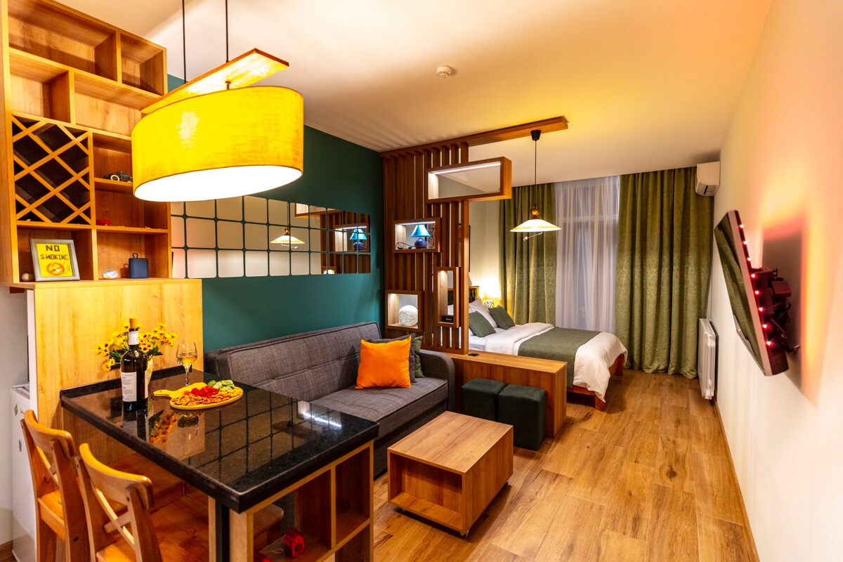 Batum Merkez'e sadece 15 dakika mesafede, ısıtmalı havuzu ve panoramik deniz manzarası olan eşsiz bir kır evi. Burası mahremiyet, sessizlik ve romantizm arayanlar için, bir çift için mükemmel. 🌅 Büyüleyici bir manzaraya, samimi bir atmosfere ve şık bir tasarıma sahip olacaksınız. 🏊♂️ Size özel ısıtmalı havuz. 🌿 Mekân huzur ve doğa doludur. Önemli: Kulübeye gitmek için yaklaşık 50 metre yokuş yukarı yürümeniz gerekiyor. Manzara bu küçük çabayı tamamen telafi edecek.