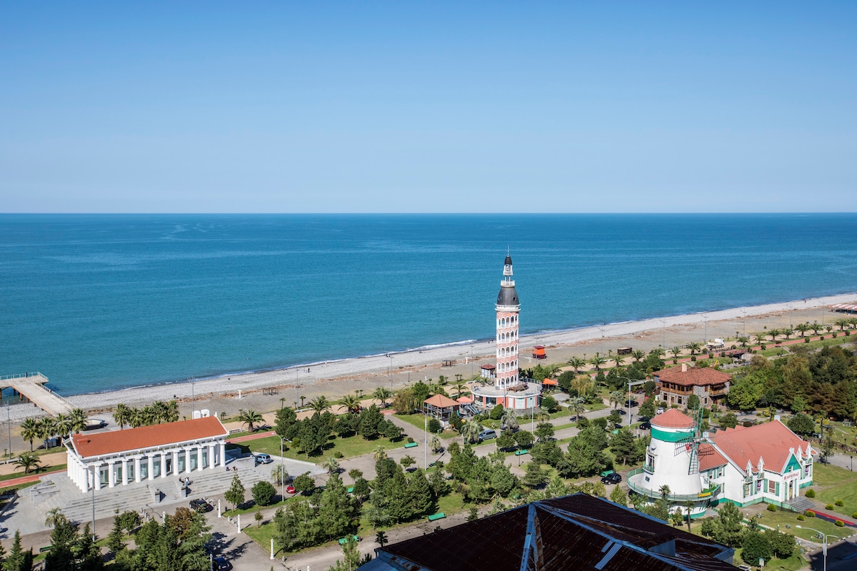 Elit Batum Manzaralı kompleksin 5. katında romantik stüdyo daire. Panoramik deniz ve gün batımı manzarası. Kompleks sıfır çizgisinde, denize giden yolu geçmenize gerek yok! Set, daha uzun konaklamalar için ayrıntılı olarak düşünülmüştür. Rahat yatak, hafif bölümlere ayrılmış, yemek pişirmek için gerekli mutfak eşyaları ve aletler. Kablosuz internet bağlantısı ücretsizdir! Korumalı bir otopark (ücretli) bulunmaktadır. Bölgede dükkanlar ve kafeler bulunmaktadır. Yürüyüş: - Grand Bellagio Casino'ya 5 dakika mesafededir. - Alışveriş merkezine 7 dakika. - Airspotting'e 9 dakika mesafededir.