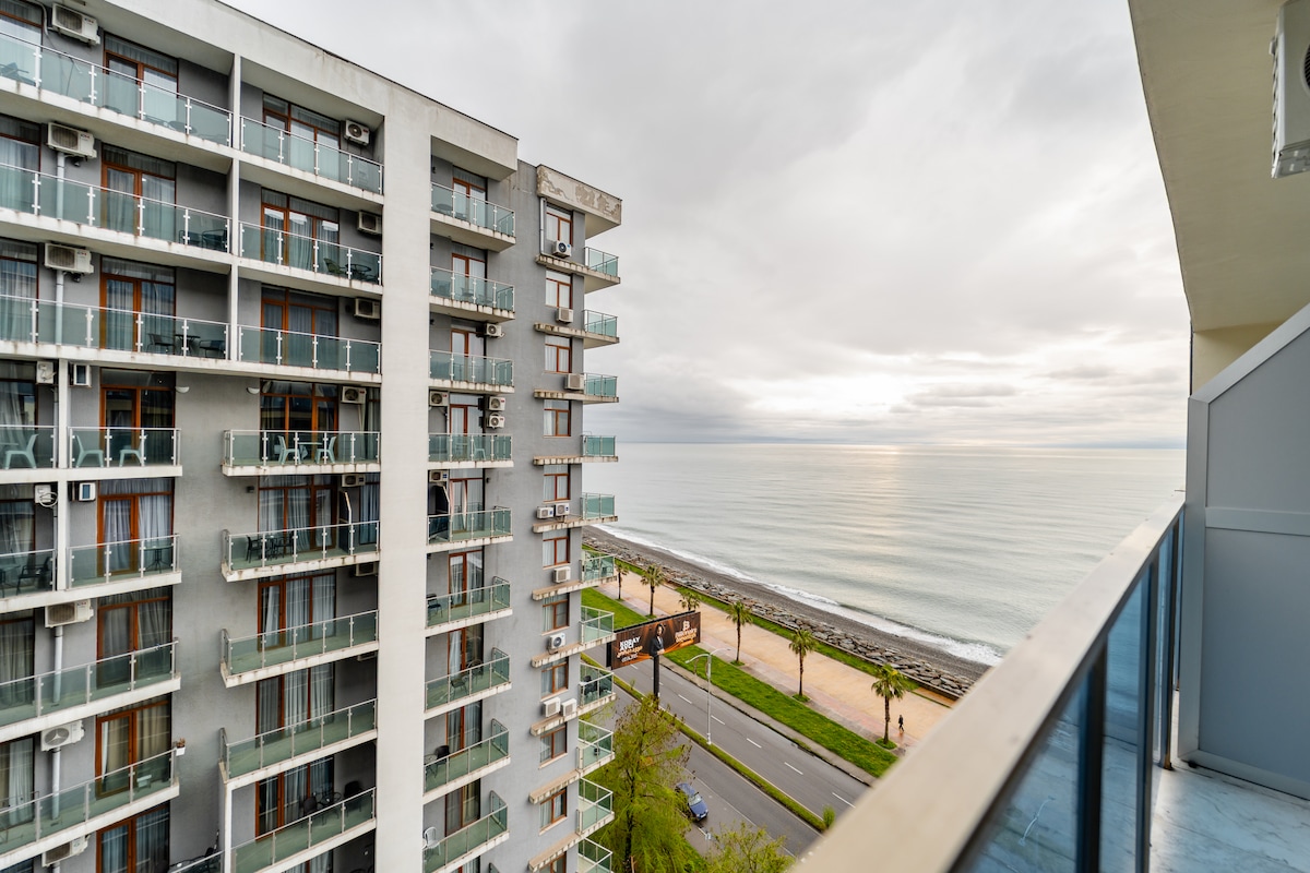 The apartment is located on the 9th floor, in the most beautiful part of the Adjara region called Gonio, close to the best beaches of Batumi. There is free parking on site. Two-bedroom apartments with a beautiful terrace overlooking the sea are ideal for couples, business travelers, and families (with children). Also at your disposal is an XBOX Series S, a projector, an audio system, board games, books, and an umbrella for comfortable sunbathing. P.S. There is also a playpen-bed.