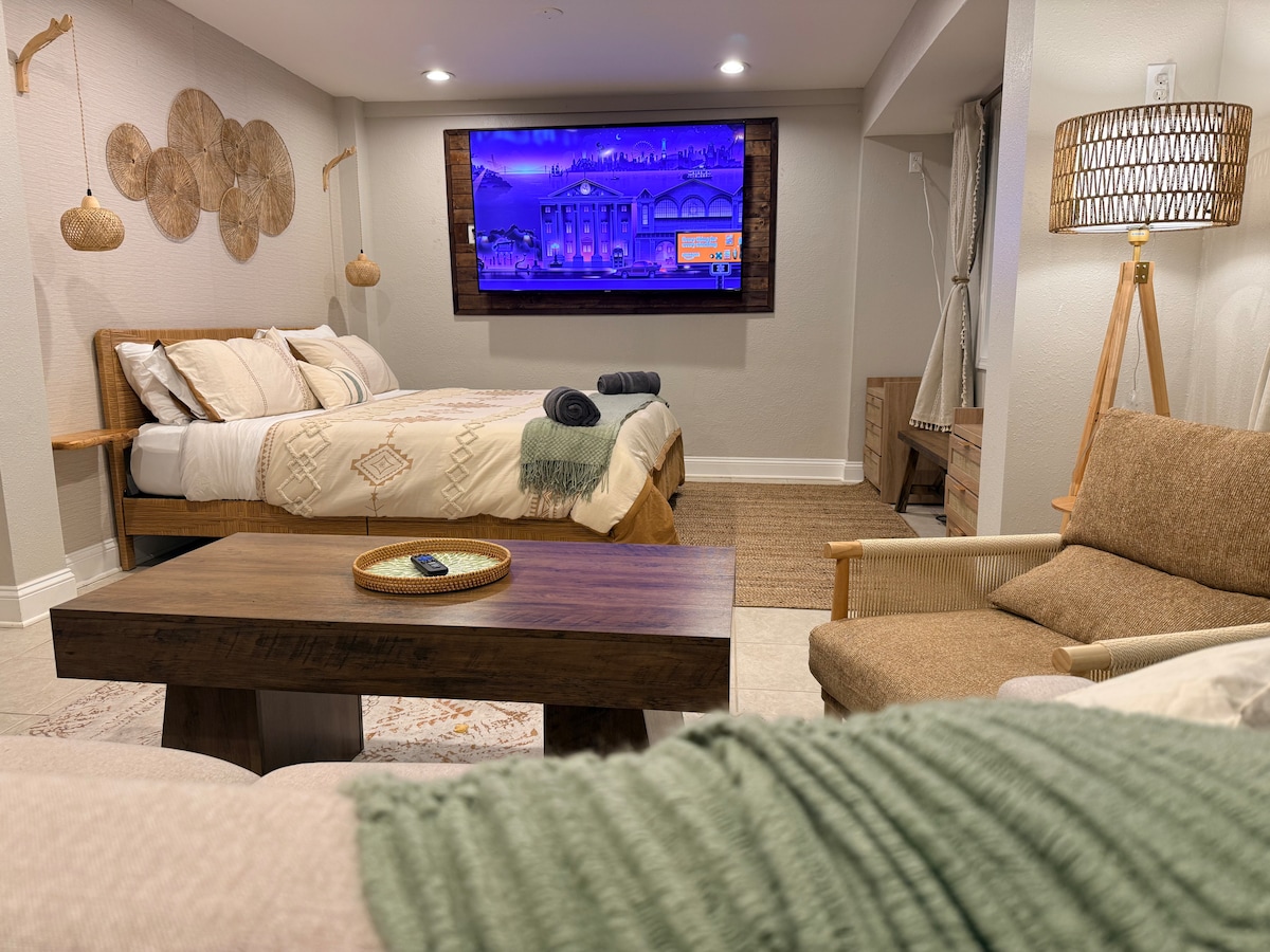 Güvenli arka bahçemde bulunan, queen boy yatağın huzurlu bir gece uykusu vaat ettiği ve iyi donanımlı küçük mutfağımızın yemek hazırlamayı kolaylaştırdığı rahat küçük evimize hoş geldiniz. Küçük evden sadece birkaç adım uzaklıktaki arka bahçede ücretsiz park edebilirsiniz. Ayrıca, yıldızların altında samimi akşamlar için açık hava ateş çukurunun etrafında toplanma fırsatınız olacak. İçeride, akıllı TV ile rahatlayın ve ücretsiz kablosuz internet bağlantısı ile bağlantıda kalın.