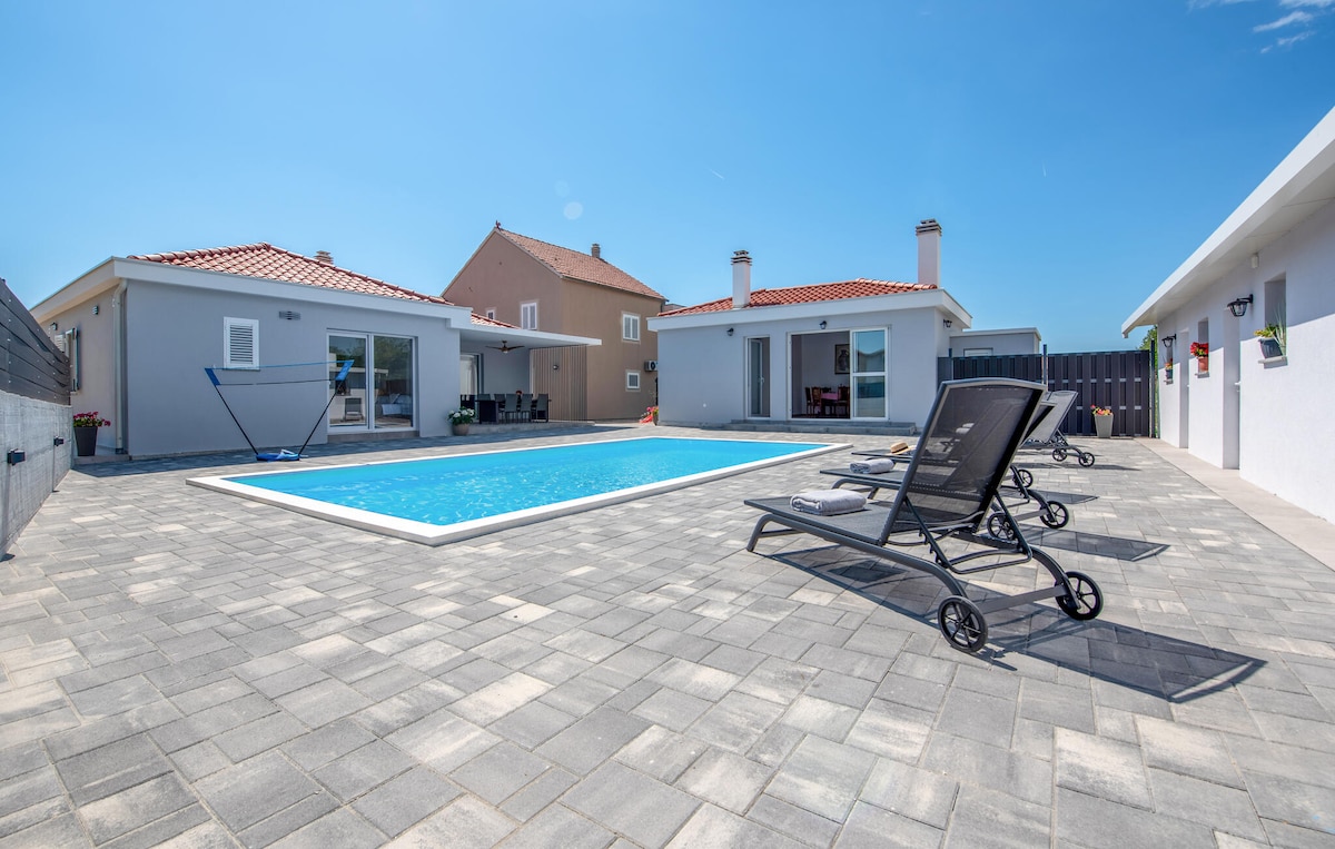 Isıtmalı havuzu, jakuzisi ve saunası olan bu güzel villa, vadiye nefes kesici bir manzarası olan uzak ve tenha bir manzaraya sahiptir. Nisan ayından kasım ayına kadar ısıtmalı havuz. Dinlenmek için harika bir yer ve bölgeyi ve Hırvatistan'ı keşfetmek için bir başlangıç noktası! Şehir mesafesi Zadar 28 km (havaalanı 20 km) uzaklıktadır. Šibenik 50 km uzaklıktadır. Split 125 km (havaalanı 99 km) uzaklıktadır. Gezip görülecek yerlerin mesafesi Plitvice gölleri 125 km uzaklıkta. Krka 45 km uzaklıktadır. Kornati 30 km uzaklıkta.