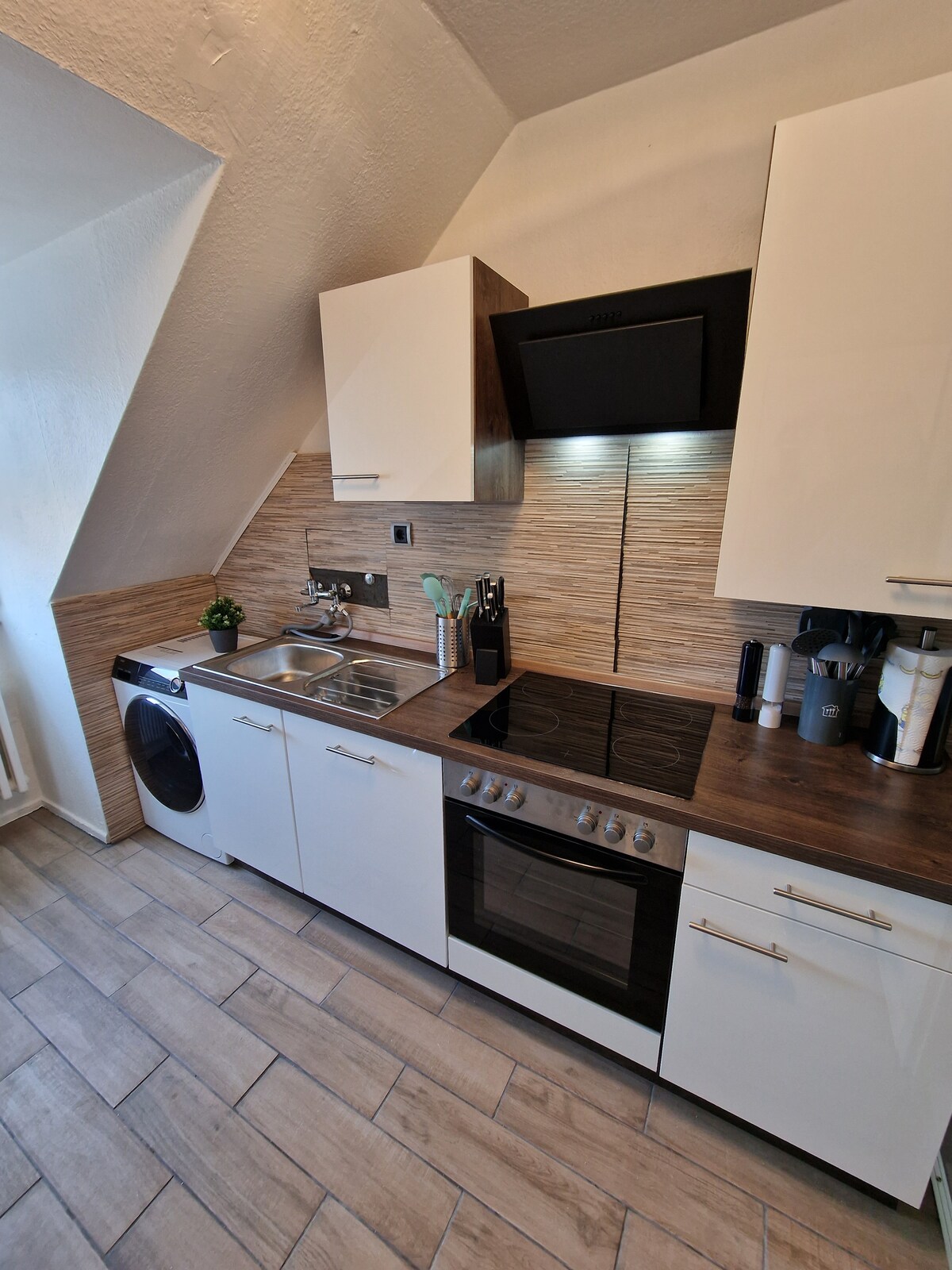 Welcome to our Himmelsstürmer Apartments! This modern apartment features large windows, stylish design, and plenty of light. The living area sofa can be converted into an extra bed. The kitchen and bathroom are fully equipped, and the bedroom’s box-spring bed with blackout curtains ensures restful sleep. High-speed Wi-Fi, HD TV with Netflix & Disney+, towels and parking complete your stay.