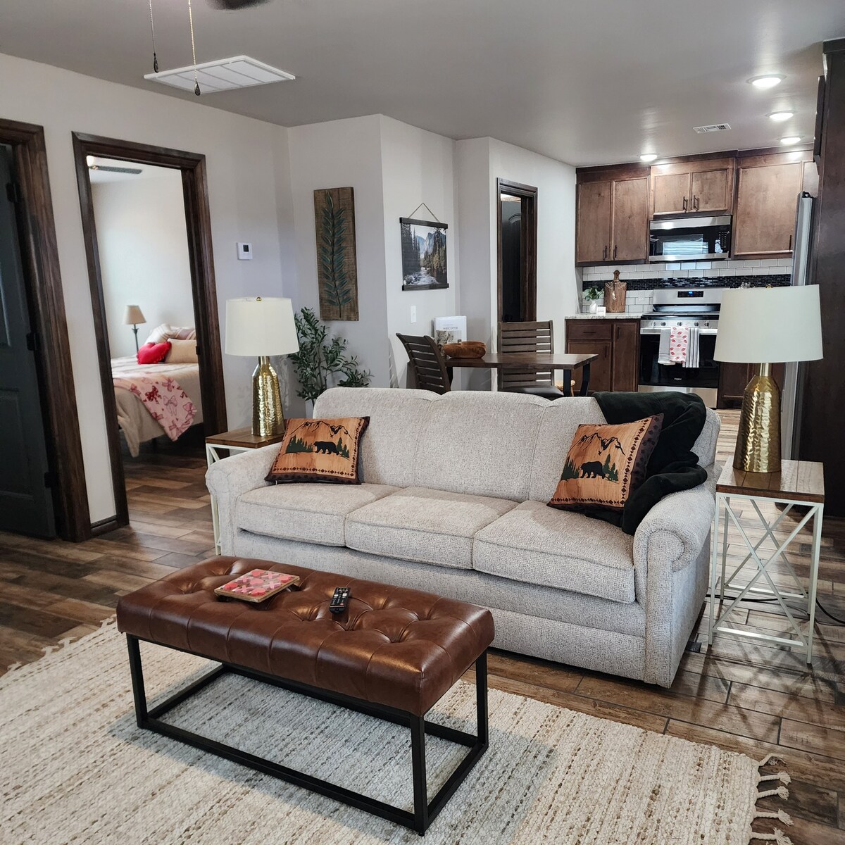 This cozy barndominium guest house combines rustic charm with modern convenience, located 15-30 minutes from Mustang, Norman, Moore, and Newcastle, Oklahoma. It features a spacious one-bedroom with a comfortable Purple mattress, a sleeper sofa, and new furniture and a fully stocked kitchen. Guests enjoy a private entrance, dedicated driveway, and washer/dryer. Close to Highways 37 & 4, it’s the perfect countryside retreat with easy access to nearby amenities.