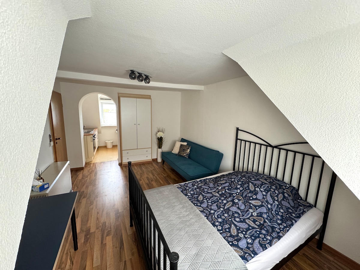 Daire, 1909 yılında inşa edilmiş eski bir binanın 4. katında yer alıyor ve Schweinfurt'un eski kentinin çatılarını görüyor. Genişletilmiş üçgen çatısı ve açık manzarasıyla 40 m²'lik bu çatı katı dairesinde kendinizi hemen evinizde gibi hissedeceksiniz. Uzun süreli konaklama veya geçici yaşam için gerekli olan her şeye sahiptir. Duşlu bir banyosu ve yepyeni, tam donanımlı, buzdolabı, kahve makinesi, ekmek kızartma makinesi, su ısıtıcısı, ocak ve tabak çanak bulunan açık bir mutfağı vardır.