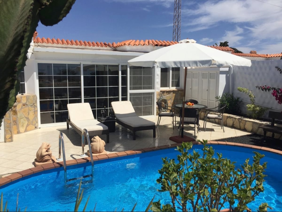 Grand Tarajal'ın sessiz bölgesinde özel havuzlu müstakil villa. Dinlenmek ve fişini çekmek isteyen çiftler veya aileler için tasarlanmıştır. Casa de Sol, keyifli bir tatil için ihtiyacınız olan tüm konfora sahip, yenilenmiş bir dekorasyonlu ev ve yeni inşa edilmiş bir havuzdur. Tüm odalar çok aydınlıktır ve terastan manzara izlenebilir. Kaliteli tekstil ürünleri ve sade mobilyalar, kendinizi evinizde hissetmenizi sağlar. Kaynak tanıtımı Oturma odasında kanepe, düz ekran TV, ücretsiz kablosuz internet bağlantısı ve duş ve saç kurutma makinesi bulunan iki tam donanımlı banyo bulunmaktadır. Büyük ana yatak odasında duşlu banyo ve 180 cm çift kişilik yatak, küçük balkon uzaktaki dağları görebilir; ikinci yatak odasında çift kişilik yatak, üçüncü yatak odasında iki tek kişilik yatak, balkon denizi görebilir; ikinci katta duşlu banyo; büyük aileler için uygundur. Tam donanımlı açık planlı mutfakta yemek yeme alanı bulunmaktadır, böylece istediğiniz zaman yemek pişirebilirsiniz. Bulaşık makinesi, buzdolabı, fırın, elektrikli ocak, mikrodalga fırın, su ısıtıcısı, kahve makinesi, blender ve gerekli tüm mutfak gereçleri ile donatılmıştır. Evin çamaşır makinesi ve ütü ile donatılmış bir çamaşır yıkama alanı da bulunmaktadır. Ve en sevdiğimiz! Terasında deniz suyu havuzu, duş ve açık hava yemek masası, barbekü ve gölgelik dinlenme alanı bulunmaktadır. Kolay ücretsiz park yeri Bu villa, İspanyol yaşamını yakından deneyimlemek isteyenler için idealdir. Orada küçük barlar, restoranlar, süpermarketler, moda mağazaları, eczaneler vb. bulabilirsiniz! Kapının hemen dışında siyah kumlu bir plaj var.…...
