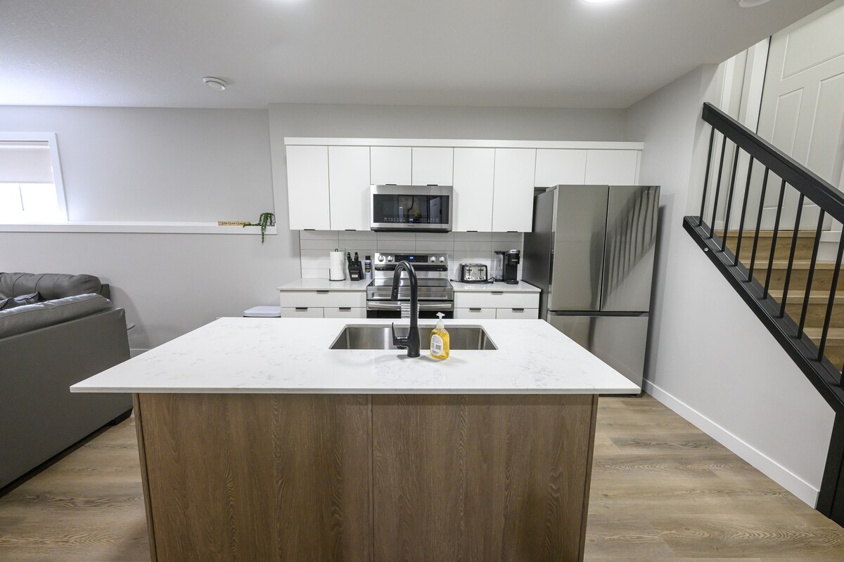 Evinizden uzaktaki evinize hoş geldiniz! Bu geniş ana kat, 3 yatak odalı süit, aileler, gruplar veya konfor ve rahatlık arayan herkes için mükemmel bir inziva yeridir. İster tatil ister yeni gelen ister her yerden iş kaçamağı için burada olun, mekânımızda ihtiyacınız olan her şey var: Rahat queen boy yataklı ve temiz çarşaflı 3 rahat yatak odası Tam donanımlı bir mutfak ve bir yemek alanı Banyo: küvet/duş/temiz havlu/tuvalet malzemeleri Oturma odası/hızlı kablosuz internet bağlantısı, akıllı TV ve çalışma alanı Ücretsiz çamaşır yıkama ve otopark