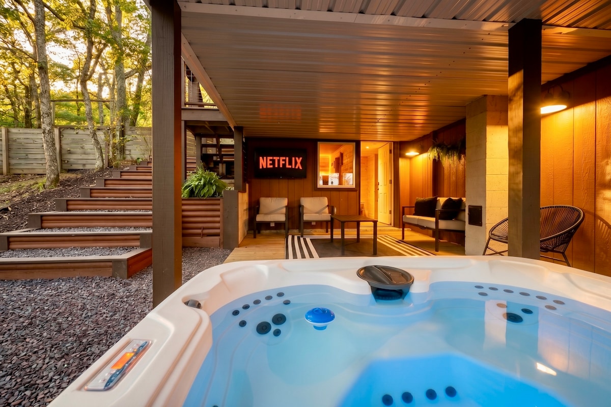 Pitoresk ferah lükse hoş geldiniz: Özel patikaları olan 200 dönümlük geniş bir mülkte gizlenmiş bu tamamen yenilenmiş kulübe. 1 yatak odalı bu muhteşem mekânda şunlar bulunmaktadır: tonozlu tavanlar, yepyeni mutfak/ev aletleri, oturma yerli granit ada tezgah, yemek odası, makyaj odası ve duşakabinli/banyo küvetli banyo, king boy yatak, karartmalı perdeler, doğa manzaralı büyük pencereler, akıllı TV, barbekü, jakuzi seçeneği (Mayıs ayında kullanılabilir) ve huzurlu ormana ve yürüyüş yollarına doğrudan erişim.
