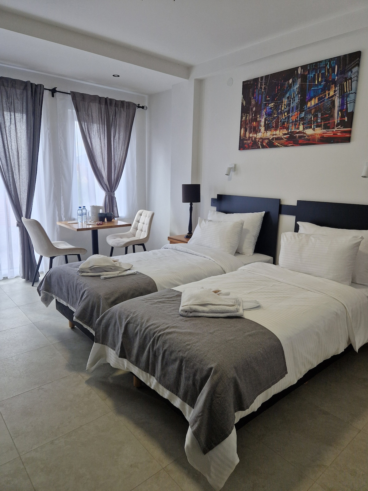 Located 2.7 km from Stone Bridge, 2 km from famous shopping centar City mall, while Macedonia Square is 2.6 km away. Living Rooms offers terrace and air-conditioned accommodations with a balcony and free WiFi. The units come with hardwood floors and some of units are fully equipped kitchen with a fridge, a flat-screen TV with cable channels. Living rooms entry is secure with codes. Also fresh coffee and snacks are 24/7 avaliable. Mini hotel, 6 rooms. Rooms are modern, new hotel rooms, 27m2.