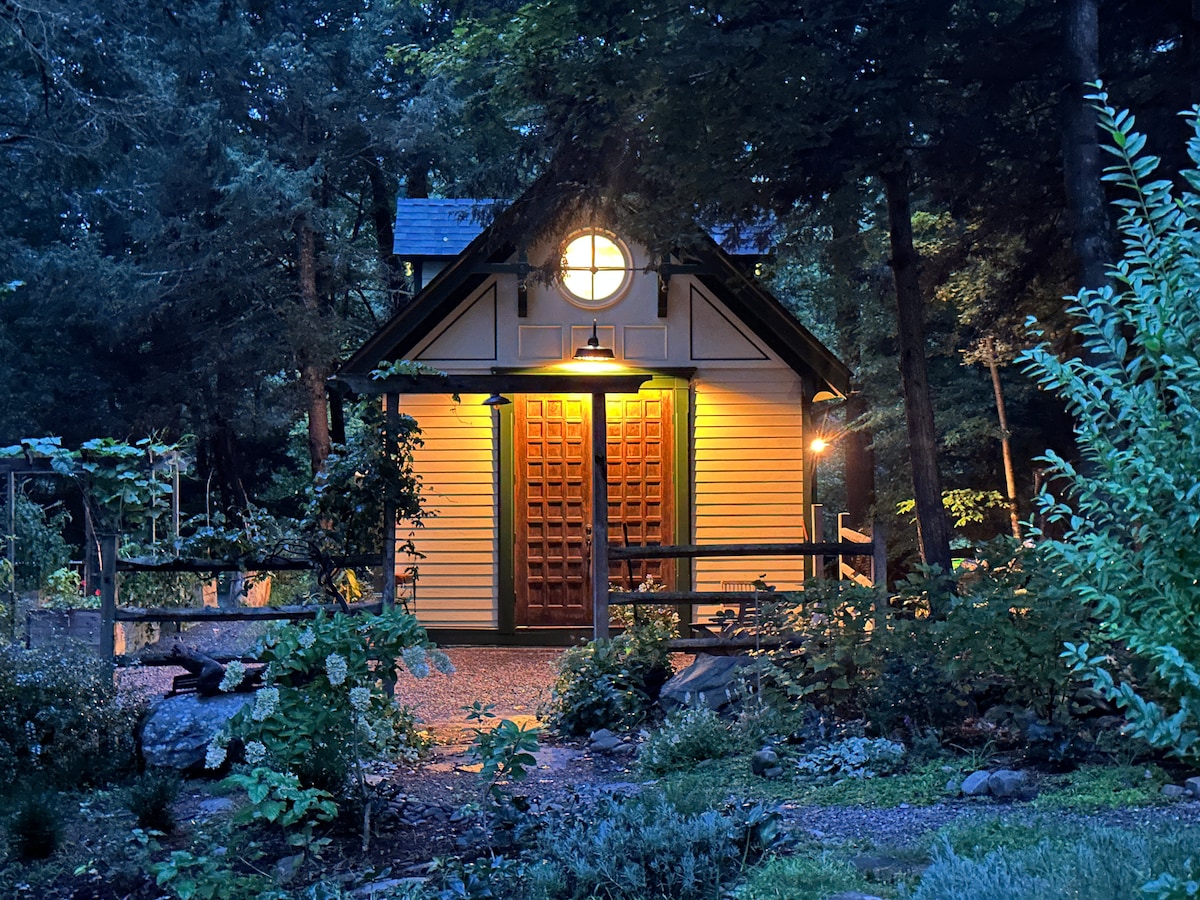 Here now; Beautiful Fall exploring, hiking, dining and farm markets… Our storybook cabin is privately nestled in the heart of the Catskill Mts, near a seasonal stream and lake, under open sky, surrounded by forest. Enjoy very nearby skiing; Windham or Hunter Mt, swimming, kayaking, hiking, dining, farm markets. Experience true quiet, endless stars, indoor and outdoor wood fires, complimentary firewood, natural fabrics, authentic art/vintage design, full kitchen, rain shower, stone patio, grill.