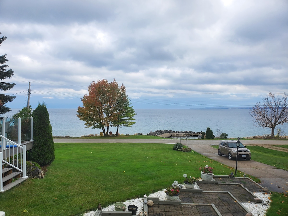 Meaford Retreat'inize hoş geldiniz! - 7 kişilik (king boy yatak, queen yatak ve 3 ikiz) - 450 metreden (1500 fit) kıyı şeridine sahip Georgian Bay sahiline ve aile dostu Memorial Park'a 5 dakika yürüme mesafesinde. - Dökülmeyen evcil hayvanlara hoş geldiniz. - 25' sunroom - Balkon: Georgian Bay'in barbekü ve mevsimsel manzarası - Nevresim takımları, havlular ve mutfak gereçleri dahildir. - 22:00 - 07:00 saatleri arasında gürültü yapmama politikası. - Elektrikli şömine - Kar kaldırma dahildir.