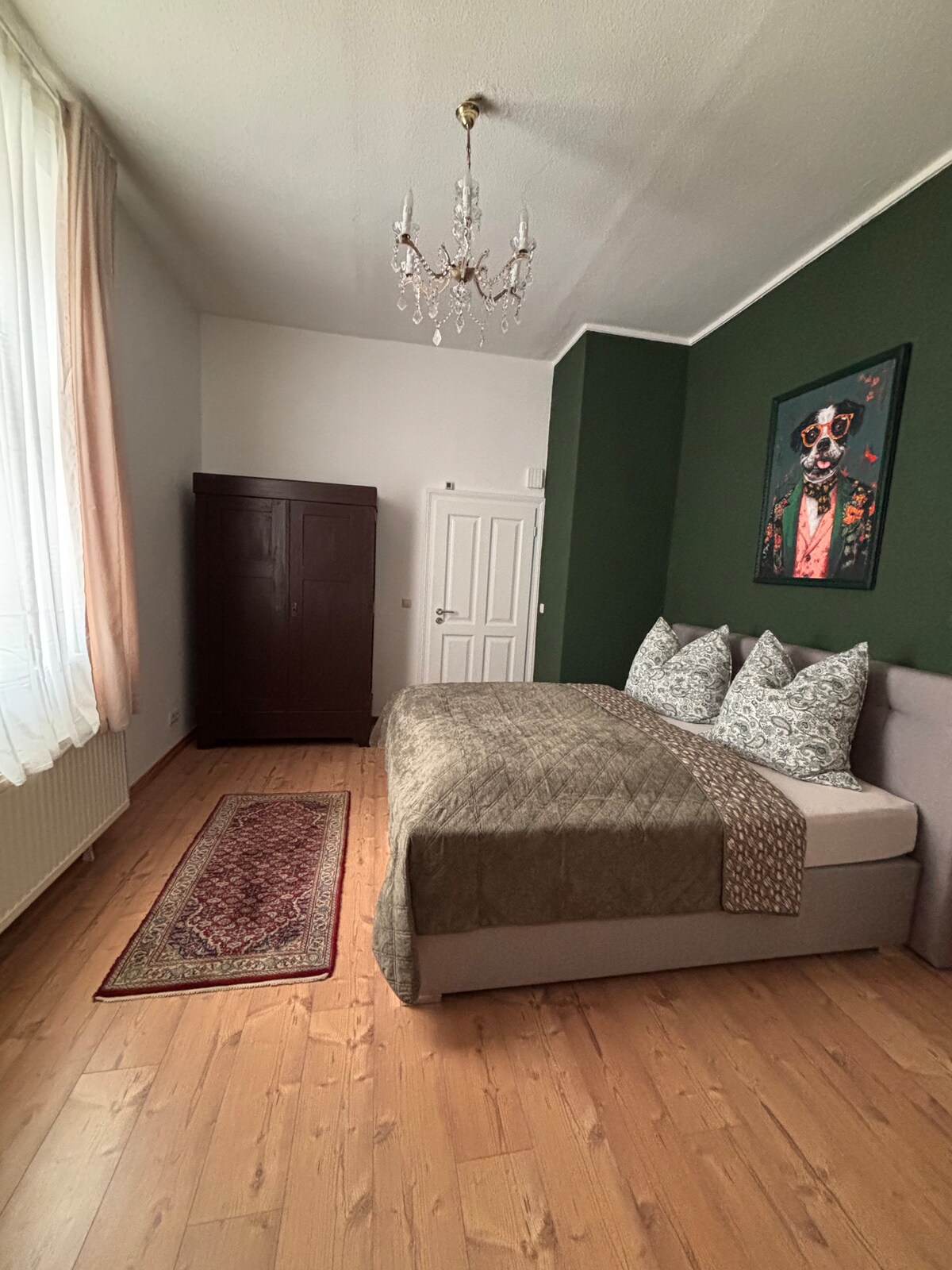 Schwerin'in kapılarının önünde, iki ayrı tasarımlı daireye sahip bitişik yeni binamızla birlikte 100 yıldan daha eski konut binamız bulunmaktadır. "Gardenview" hem iş hem de bireysel seyahatseverler için uygundur. 1. katta yer alan bu daire, king boy yatak, masa ve yüksek sandalyeli küçük yemek alanı ile ışıkla dolu bir oturma odası sunmaktadır. Bahçe manzaralı daireyi, bitişik bir mutfak ve ayrı bir duş odası tamamlıyor.