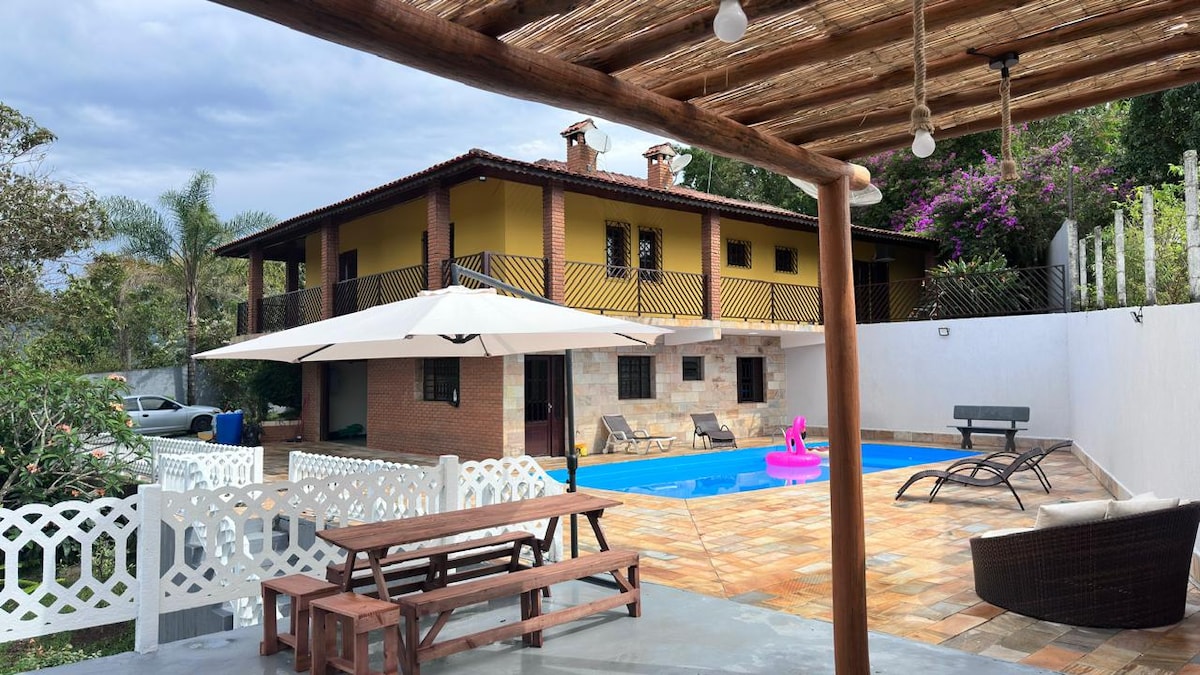 Noel/Yılbaşı 2025 ve Karnaval 2026 minimum 10 yetişkin. Modern mimariye sahip Chácara! São Paulo'ya 30 dakika mesafede yüksek hızlı internet. Aileniz, arkadaşlarınız veya iş ekibiniz için aradığınız gizlilik ve boş zaman. Wifi 300 Mg Konaklama sırasındaki ziyaretler ayrı bir fiyatla günlük kullanıma açıktır. Lütfen önce ev sahibine danışın. Evden 1 km mesafede tamamlanmış Ifood Services ve yerel ticaret. İzin verildikten sonra en fazla 2 küçük evcil hayvana izin verilir. 6 taksite kadar ücretsiz taksit!