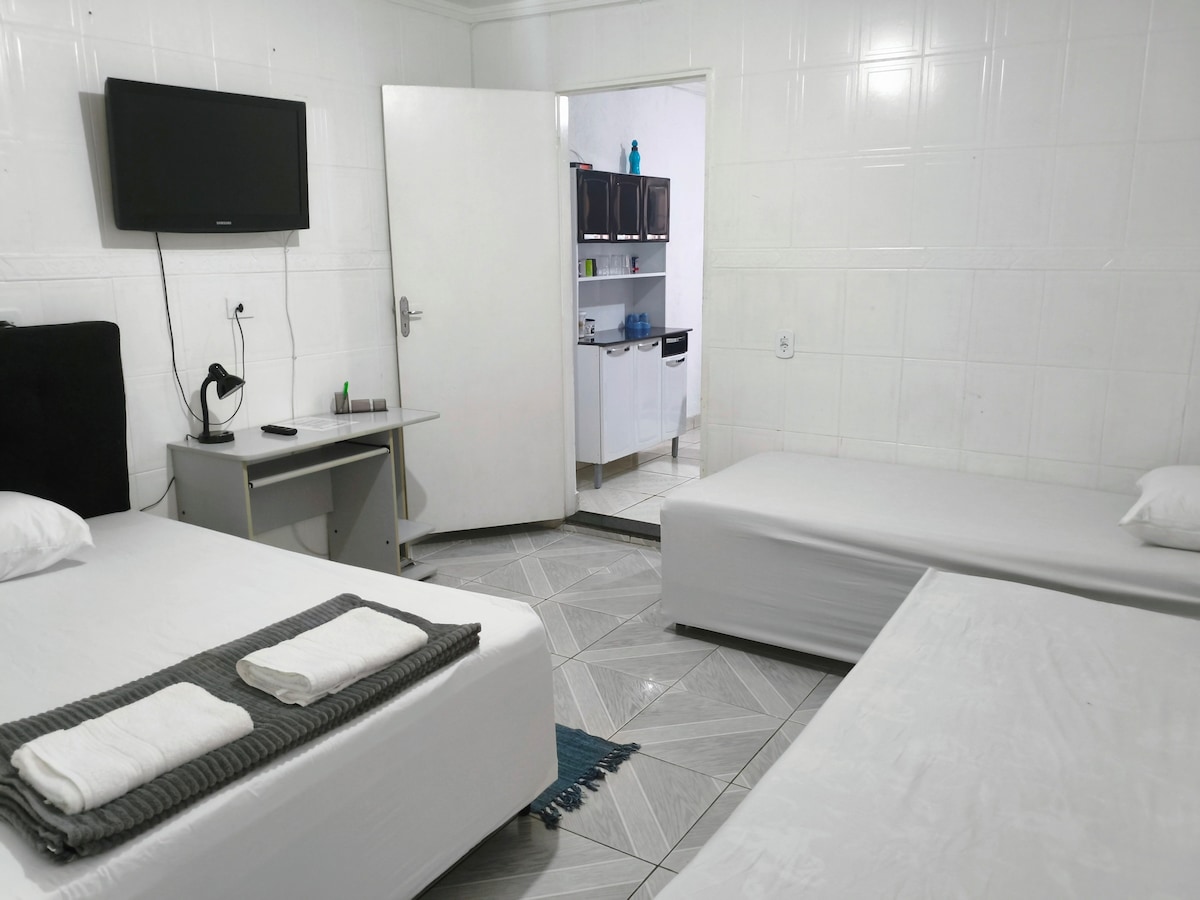 Sessiz, yeni ve konforlu bir bölgede ev. Pazarlara, eczanelere, bankalara, restoranlara ve fırınlara yakın iyi bir konumda. 6 dakika uzaklıktayız. Taboão istasyonu ve havaalanına 11 dakika. Evde 1 adet klimalı yatak odası ve 2 adet ikiz yatak ve 1 adet çift kişilik yatak olmak üzere 3 adet yatak bulunmaktadır. 6 kişiye kadar konaklama. Bir gece uykusunu garanti etmek için konforlu yataklar. İster kısa ister uzun süreli konaklama için olsun. Mekanımızda ayrıca fiyata dahil otopark bulunmaktadır. Bizimle kalın, memnuniyet duyarız!