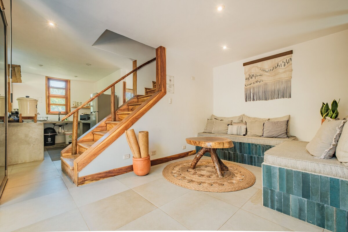 Gelin, rahatlayın ve Bonsai Bungalows'daki yemyeşil özel bahçesi ve açık verandasıyla sevimli casitamızın tadını çıkarın. Mobilyalardan mobilyalara ve mükemmel dinlendirici bir plaj kaçamağı için ihtiyacınız olan her şeye kadar evimizin çoğunu kendimiz tasarladık ve el yaptık. Evde iyi donanımlı bir mutfak, yemek alanı, king boy yatak, banyo ve klima bulunmaktadır. Hamak ve dinlenme alanı ile kendi özel kapalı tropikal bahçenizin keyfini çıkarın.