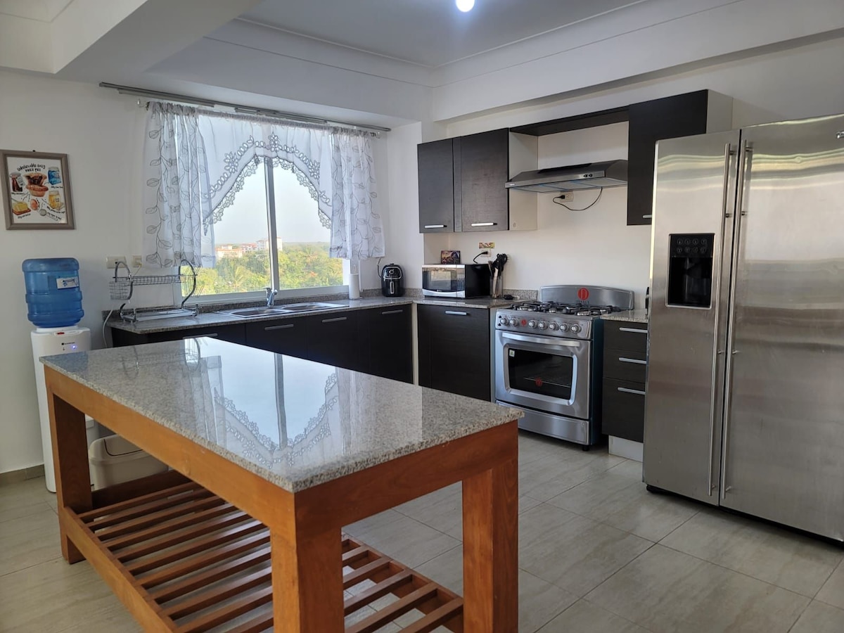 Havaalanına 20 dakika mesafede, Juan Dolio plajının en iyi manzarasına sahip 19. kattaki bu daire. 1BD, 2 banyo, tam donanımlı mutfak, merkezi hava, Netflix, Disney plus, telefon, teleferik, 24 saat kablosuz internet bağlantısı, kahvaltı alanı, kanepe yatağı, koruyucu file ve panjurlu 2 adet akıllı TV 65 ve 55 inç. Ortak alanlarda spor salonu, yüzme havuzları, ısıtıcılı jakuzi, barbekü, büyük otoparklar, bilardo masalı çocuk ve yetişkinler için oyun alanı, domino masası, masa futbolu...