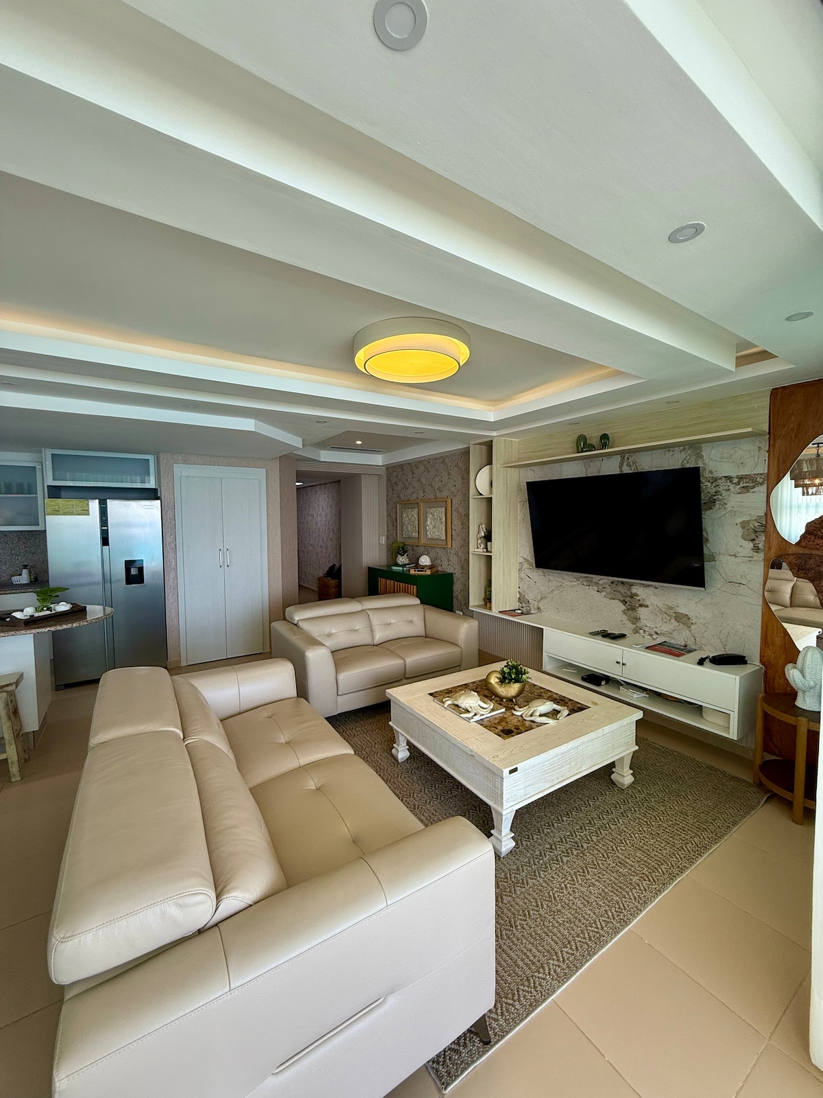 Juan Dolio'da size en iyi deneyimi sunmak için tam donanımlı 2 yatak odalı güzel ve ferah daire, muhteşem geniş mobilyalı ve en sevdiğiniz filmlerin ve dizilerin keyfini bir sinema salonu gibi çıkarmak için ses ekipmanıyla 75" televizyonlu sıcak bir oturma odasına sahiptir. Ayrıca, iyi bir dinlenme sağlayacak üst düzey Amerikan versiyonu şiltelere sahiptir. Sahile 2 dakikalık yürüme mesafesindedir. 8 çeşit masa oyunumuz var.