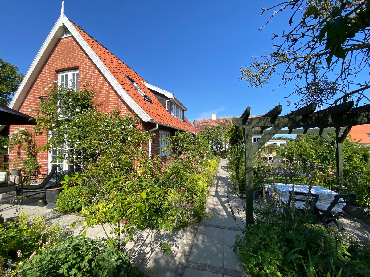 There are very few actual summerhouses in Gudhjem. Here is one - unique - both in style and location. The nordic/bohemian vibe is thoroughly implemented throughout the house. Everything from the bedroom with the pitoresque view upstairs to the kitchen/ livingroom area with the fireplace and the french door leading to the romantic small courtyard devided into tiny patios in different levels, to the lounge area with gasgrill amongst clematis on the surrounding stone fence, just screams hygge !