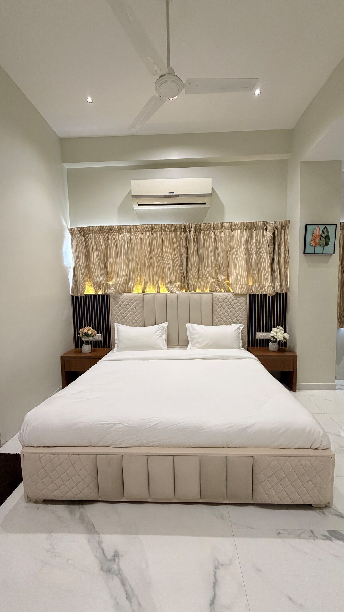 King boy yatağı ve sofistike mermer döşemesi olan lüks, sakin bir odada gevşeyin. Özellikler arasında rahat bir kanepe, klima ve özel çalışma masası bulunmaktadır. El değmemiş ebeveyn banyosu, kolaylık ve üstün konfor için modern bir gazlı su ısıtıcısı ile donatılmıştır."
