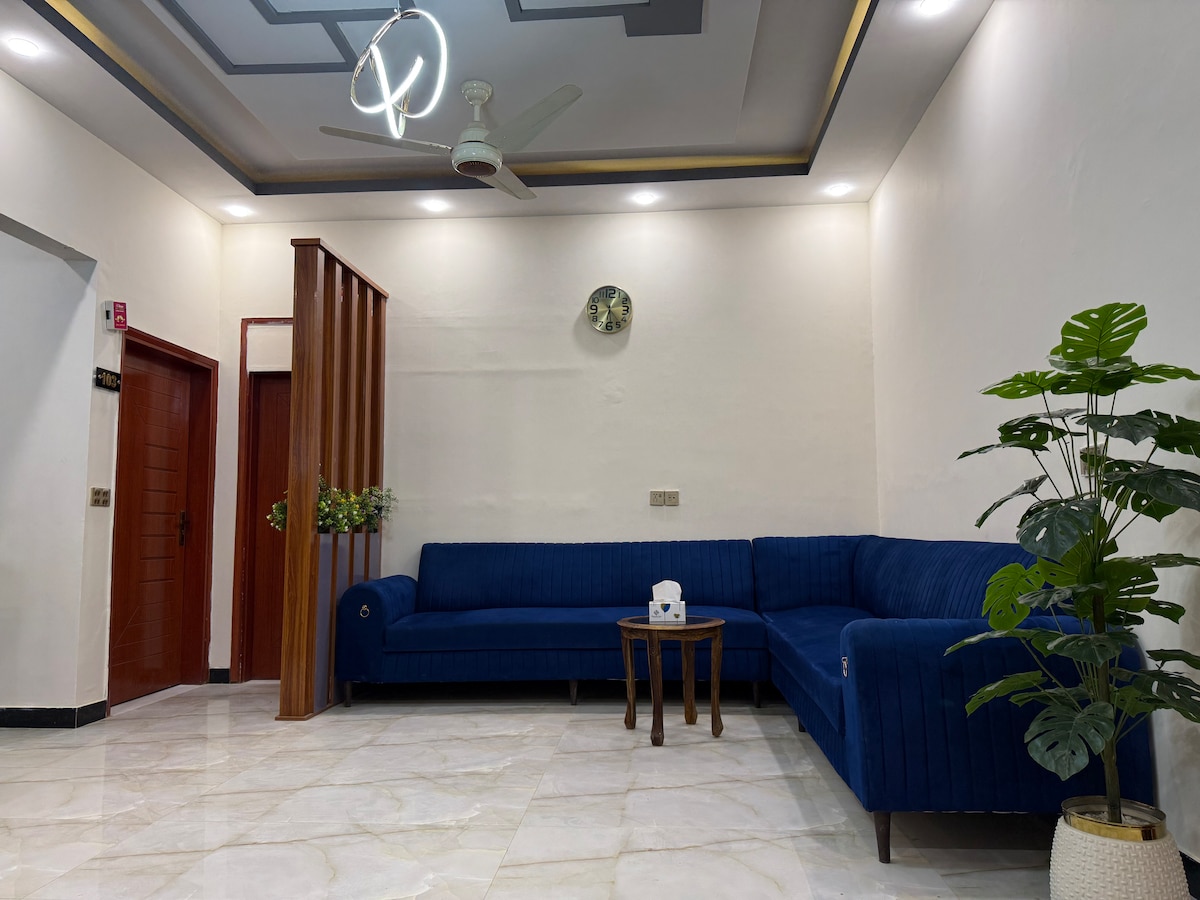 Welcome to your modern 2-bedroom apartment on Main University Road, Scheme 33, Karachi—just 10 minutes from Jinnah International Airport. Best Airbnb in Karachi ✅ 2 AC bedrooms with comfy king-size beds ✅ Fast Wi-Fi + Smart TV for work or streaming ✅ 24/7 power backup in a secure building ✅ Fully equipped kitchen & dining area ✅ Free parking inside gated premises Perfect for families, business travelers, and long stays who value peace, cleanliness, and quick access to the airport.