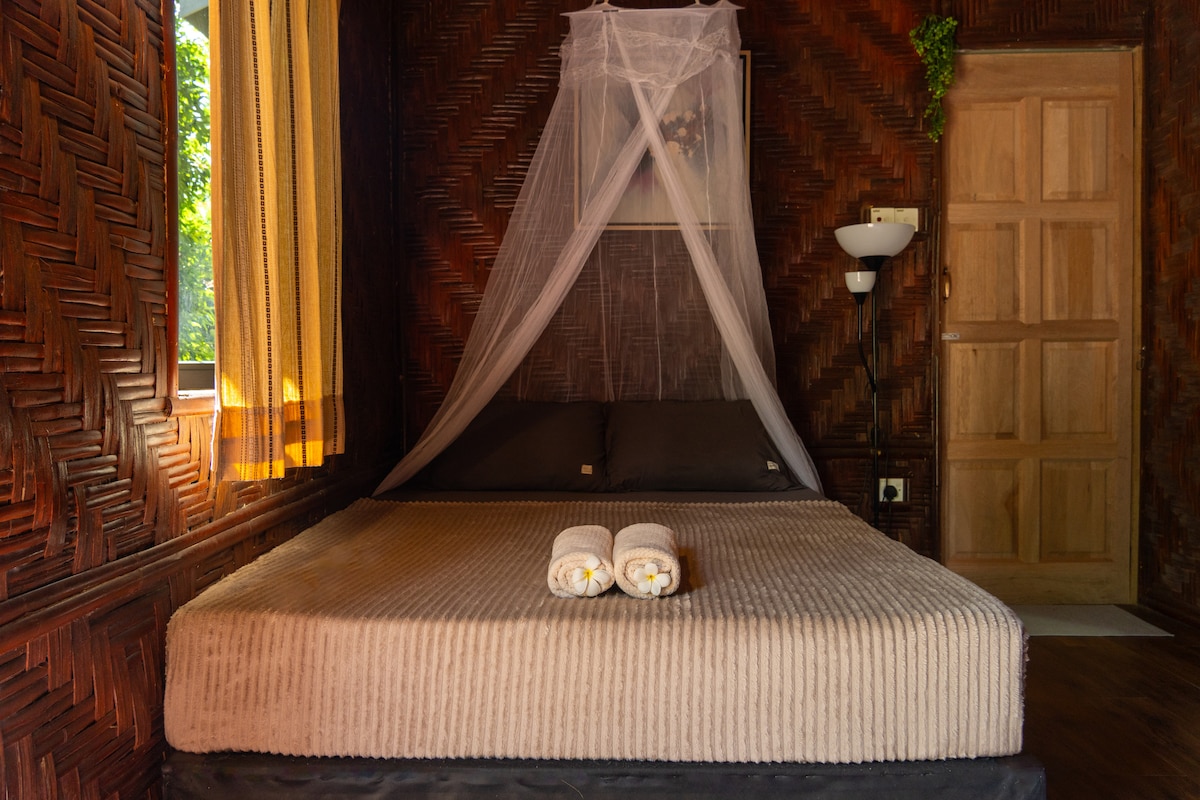 TERATAK DAMAI LANGKAWI, Rustik Kırsal İnziva, plaja yakın bir köyde pirinç tarlaları ve yemyeşil bahçelerle çevrili 1,25 dönümlük özel kapalı yerleşkede 6 benzersiz kendi kendine yemek yapan misafir evi kulübesi ve özel evdir. 6 yaşından küçük çocuklar için uygun değildir. Damai Bayu kulübesi için toplam kişi sayısı: 2 yetişkin (çift kişilik yatak) 1 çocuk (gündüz yatağı). Ekstra yatak veya beşik vermiyoruz. Bu kulübenin sunduğu olanakları görmek için lütfen aşağıdaki açıklamaları okumaya zaman ayırın.
