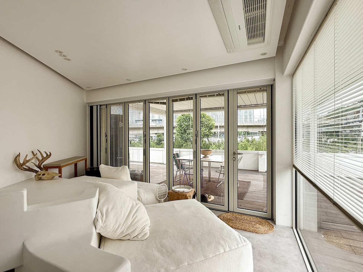 Seul'un muhteşem manzarasına sahip, tamamen yenilenmiş ve konforlu bir çatı katı dairesi. Hinoki banyosundan çıkan manzarayı kaçırmayın. Taşınabilir WiFi sağlanmıştır. Modernite ve geleneği harmanlayan Seul'ün en işlek bölgelerinden biri olan trend Gangnam'da harika bir konum... Metro hattı n. 9 Bongeunsa station with Bongeunsa temple, Coex Mall and SM Town literally at your doorstep. Gangnam şehir merkezi, Han Nehri ve yeşillik ve geleneksel güzelliğin harmanlandığı Bongneunsa'nın panoramik manzarasının tadını çıkarabileceğiniz bir çatı katıdır. Lüks malzemeler kullanılarak tamamen yenilenmiştir, modern ve konforludur. Hinoki küvetinde şehir içi açık hava banyosu atmosferinde yorgunluğunuzu atın.