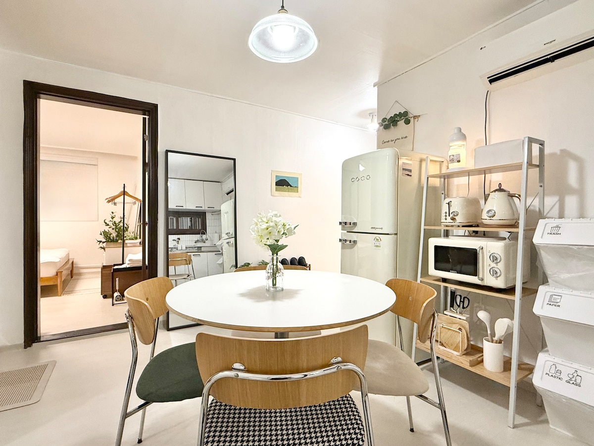 Seokchon Gölü'nün hemen önünde yer alan bu konaklama, Lotte Kulesi, Lotte Dünyası ve Seokchon Gölü'nün özel manzarasına sahiptir. Gündüzleri sakin bir göl manzarasının, geceleri ise Seul'ün muhteşem gece manzarasının tadını çıkarabileceğiniz, çiftler veya iki kişilik seyahat edenler için popüler bir mekandır. Oda her zaman keyifli, iç mekanı sade ve temiz, otel yatak takımları her seferinde değiştiriliyor. Geniş bir çift kişilik yatak konforlu bir dinlenme sağlar. 43 inç UHD akıllı TV (Netflix Premium sağlanır). Mutfakta elektrikli su kaynatıcısı, tencere ve tavalar, sofra takımları ve hatta kokteyl ve şarap bardakları vardır, bu da onu basit yemekler pişirmek veya hoş bir atmosferde içki içmek için harika hale getirir. Mikrodalga fırın, gaz ocağı ve buzdolabı en son olanaklardır ve uzun süreli konaklamalar için çamaşır makineleri, deterjanlar, yumuşatıcılar ve kurutma rafları mevcuttur. Güvenli ve konforlu bir alan için kapalı alanda sigara içmek, partiler ve evcil hayvanlar yasaktır, bu nedenle sessiz ve istikrarlı bir konaklama isteyenler için mükemmeldir. Seul'ün merkezinde, boş zamanınızı ve duyarlılığınızı mükemmel bir şekilde dolduracak bir yer. Uzun süreli konaklamalar hakkında bilgi almak için lütfen çekinmeyin:)