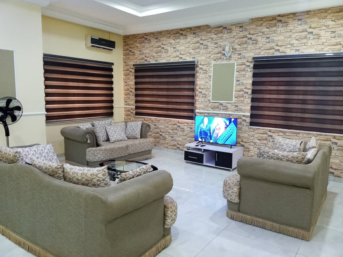 Yatak odası Basketbol atlayışı Özel balkon Fiber Optik Wifi Çamaşır makinesi Mobilyalı oturma odası Tam donanımlı mutfak 2 tuvalet ve 1 banyo PlayStation 5 (FiFA, Hit Man, MK) Restoranlara ve mağazalara yakınlık Temiz ve yeni nevresim takımları ve havlular Güneş enerjili ve invertörlü 2 klima Mükemmel müşteri hizmetleri ve desteği Girişte şifreli kapı ve kamera. 65 ve 55 akıllı TV (Prime, Netflix ve DSTV). Sakin, güvenli ve güzel semt. 7/24 elektrik (güneş enerjisi, invertör ve jeneratör).
