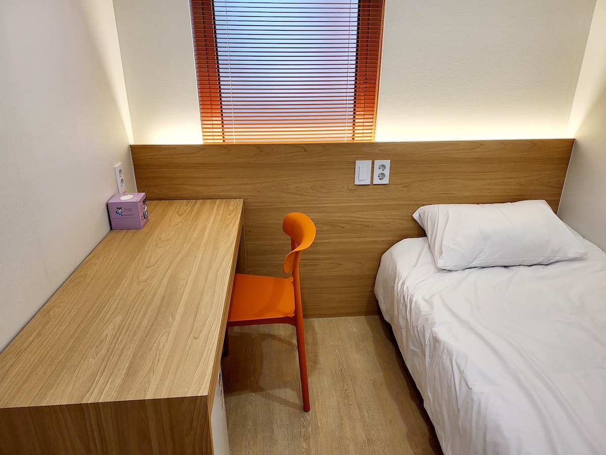 Temiz yeni konaklama, Jongno 5-ga İstasyonu'na 3 dakika yürüme mesafesinde, Gwangjang Pazarı'nın önünde, 1 kişilik tek kişilik oda, ücretsiz K ramen, otel yatak takımı.