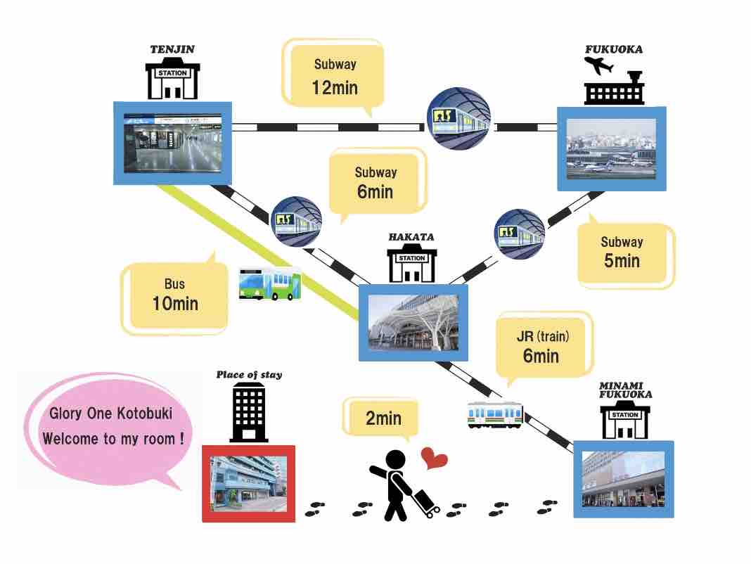 お宿 ボのAirbnbページを観覧いただき、ありがとうございます!! 博多駅から徒歩7分の好立地!福岡の中心地、博多が徒歩圏内! 天神、キャナルシティ、中洲へのアクセスも抜群です。九州観光の拠点としてもご利用ください。 お宿ボにはもう一つお部屋があります。 そちらも最大6名まで宿泊できる畳の和のお部屋です。 もしご案内希望できたらメッセージでご連絡ください。 エリア内の移動 ① 博多駅から7分(徒歩) ②地下鉄祇園駅から徒歩4分。 ③ 福岡空港(国内線)から20分(地下鉄・徒歩) ④ 福岡空港(国際線)から25分(バス・徒歩) ⑤ キャナルシティ博多から10分(徒歩) ⑥ 天神から20分(地下鉄・徒歩)