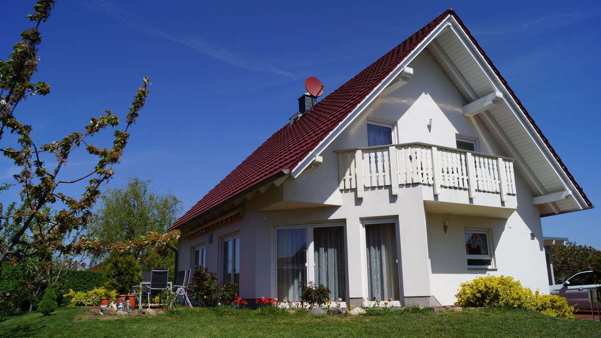 Hohenwarthe'deki Elbe Bisiklet Yolu üzerinde bulunan rahat tatil evimize hoş geldiniz. Zemin kat: Çift kişilik yataklı (160x200 cm) yatak odası, tam donanımlı mutfak. TV'li oturma odası, buharlı duşlu ve 2 kişilik jakuzili modern banyo. Üst kat: Çekyatlı ve çocuklar için oyun alanlı oda, büyük çift kişilik yataklı (180x200 cm) ve TV'li ikinci yatak odası Dış alan: Çocuklar için büyük trambolin, barbekü olanakları (gaz ve kömür) ile rahat oturma alanı.