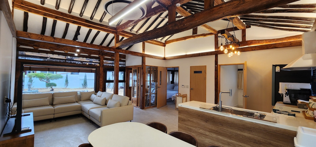 중심부에 있으면서 가족이 머물기에 적합한 공간입니다. 160년전 지어진 한옥을 1년 6개월간 리모델링 하여서 만들었습니다.1년내내 온수 수영을 즐길수 있는 멋진 한옥 수영장이 있습니다. 마루연의 마루는 순우리말로 하늘을 뜻하며 연은 멋진 수영장을 뜻하는 연못을 말합니다. 하늘과 멋진 연못이 있는 마루연에서 조용한 쉼표를 찍어 보세요.