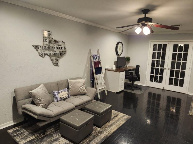 Enjoy your stay in Stephenville at our peaceful and stylish studio apartment. Located on our property, you'll have access to our private backyard and all of its amenities including a workout space, koi pond, fireplace and grill. This newly built space (April 2023) is furnished with brand new appliances, a full kitchen, refurbished wood floors and high ceilings. Within walking distance of Tarleton State University, it is ideal for parents or alumni. We look forward to your stay!