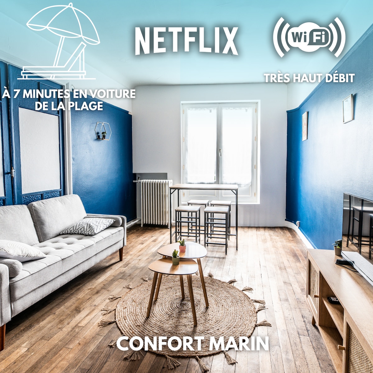 Plaj 3 dakika yürüme mesafesinde. Le Havre'da profesyonel veya eğlence amaçlı konaklamanız için ideal bir konaklama yeri: 55 m²'lik aydınlık daire, batıya bakan balkon, asansörsüz 4. kat Çarşaf, havlu ve yatak varışta yapılır, fiber wifi, donanımlı mutfak, yatak odası (yatak 160), çalışma masası/büyük TV, banyo, İtalyan duşu, küvet, çift lavabo ve tuvalet. Kapalı otopark. Les Halles 5 dk: tüm mağazalar ve restoranlar. Super U, fırın ve gazete bayisi 1 dk Otobüs, tramvay ve elektrikli scooter'lar yakındır. Doğrudan Plaj/İstasyon tramvayı: 7 dk