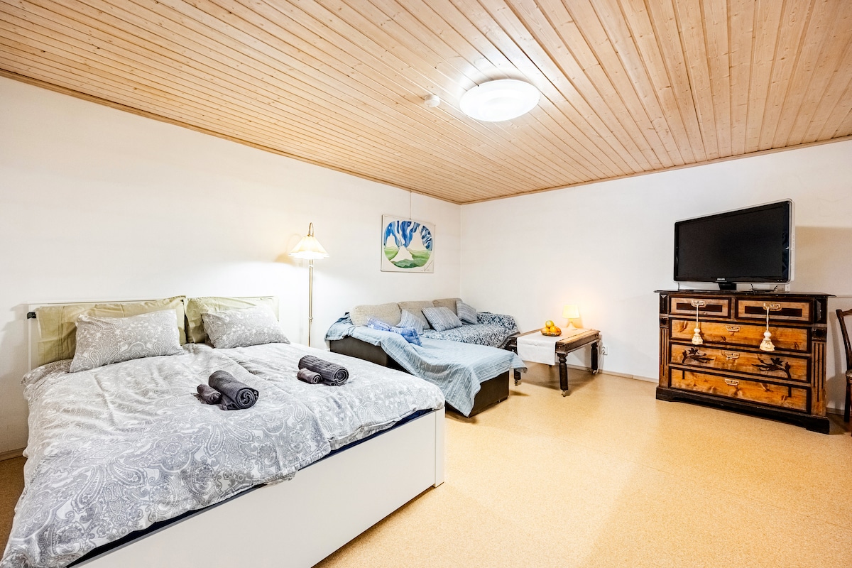 Şehir merkezine yakın 36 m² geniş stüdyo daire. Daire 2 kişi için mükemmeldir, ancak 2 yetişkin ve 2 çocuk rahatlıkla kalabilir. 2 kişilik bir çift kişilik yatak ve kanepe yatak. Stüdyoda mutfak, özel teras, özel odun ısıtmalı sauna ve banyo bulunmaktadır. Ücretsiz kablosuz internet bağlantısı ve sokakta ücretsiz park yeri. Nevresim takımları, havlu ve sauna odunu dahildir.
